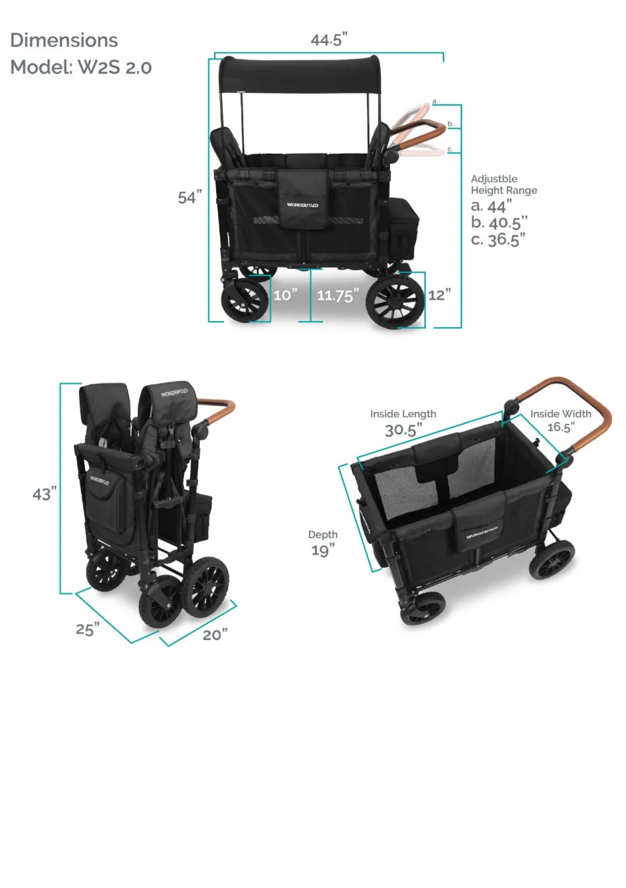 - Maße gefaltet: H 109,2 cm x B 63,5 m x L 50,8 cm