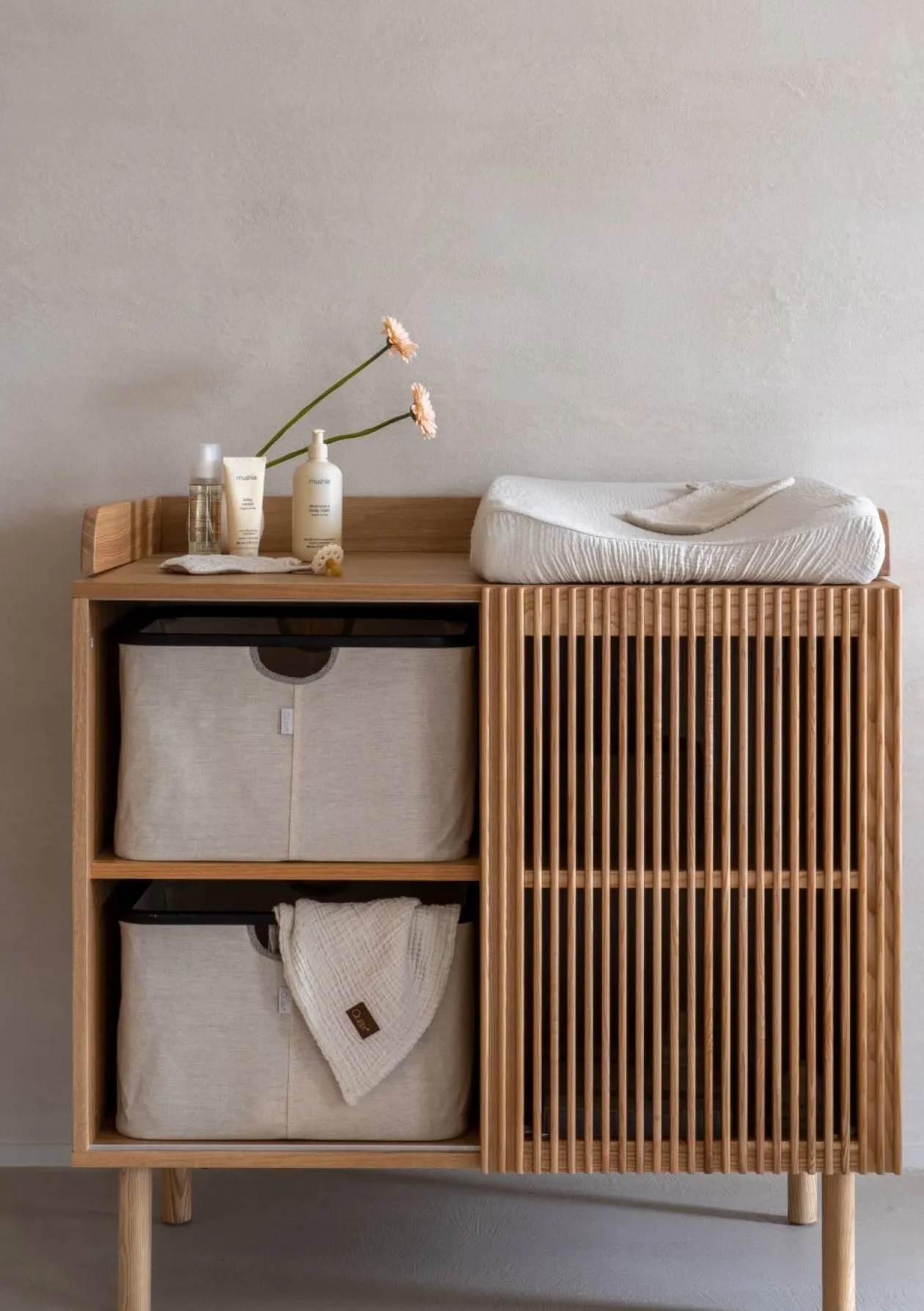 Bitte beachte: Das auf den Produktfotos abgebildete Wickelkissen und die Aufbewahrungskörbe sind separat erhältlich.