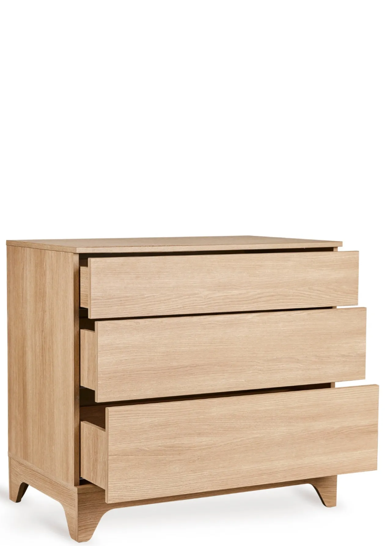 In drei grifflosen Schubladen mit Push-to-open-System hält sie großzügigen Stauraum für Kleidung, Pflegeprodukte oder Alltagsutensilien bereit. Die Kommode ist wahlweise solo oder im Bundle mit passendem Wickelaufsatz erhältlich. So entsteht eine praktische Wickelkommode, die Eltern in den ersten Lebensjahren begleitet und später – nach dem einfachen, rückstandslosen Entfernen des Aufsatzes – als stilvolle Kommode weiterverwendet werden kann.