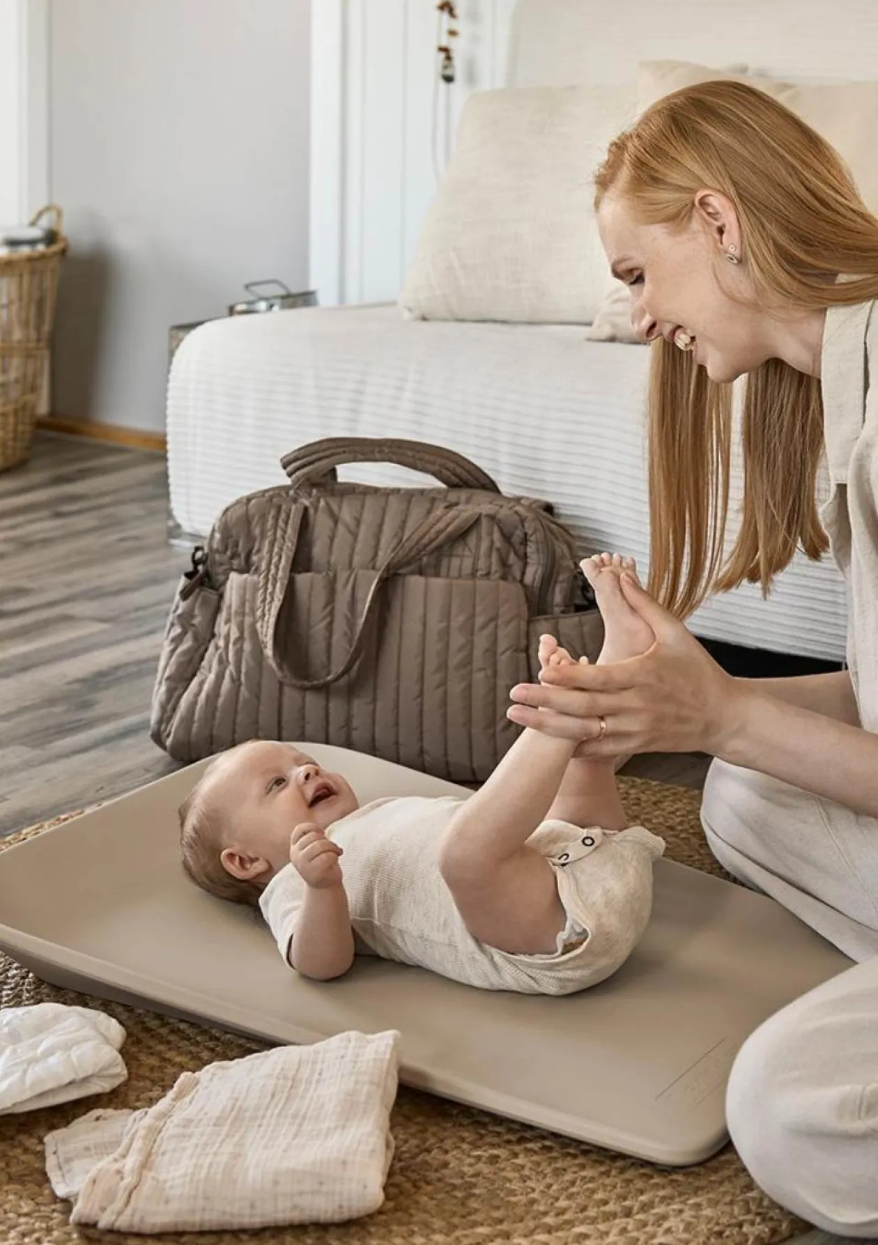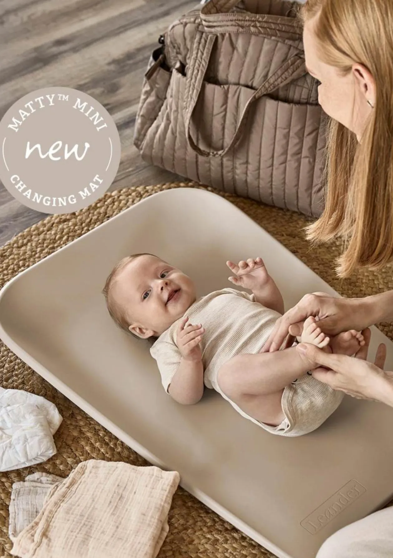 Das Original aus Dänemark: Wickelauflage LEANDER Matty™ – jetzt im kompaktem Mini-Format.