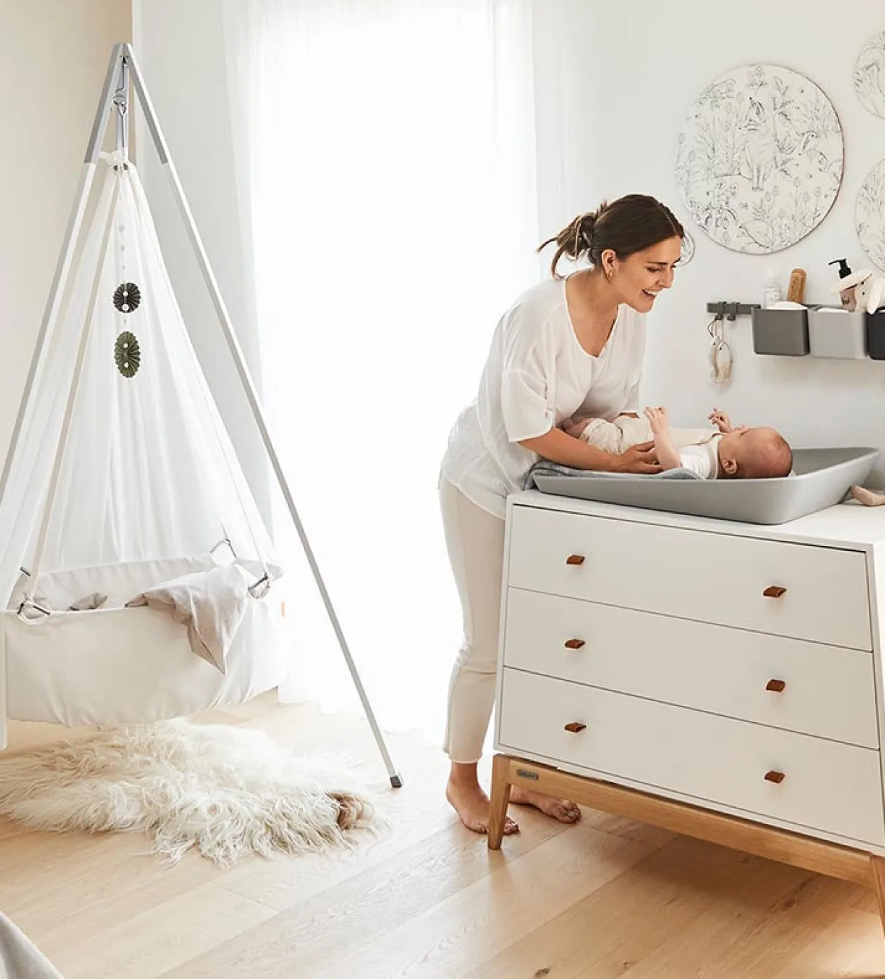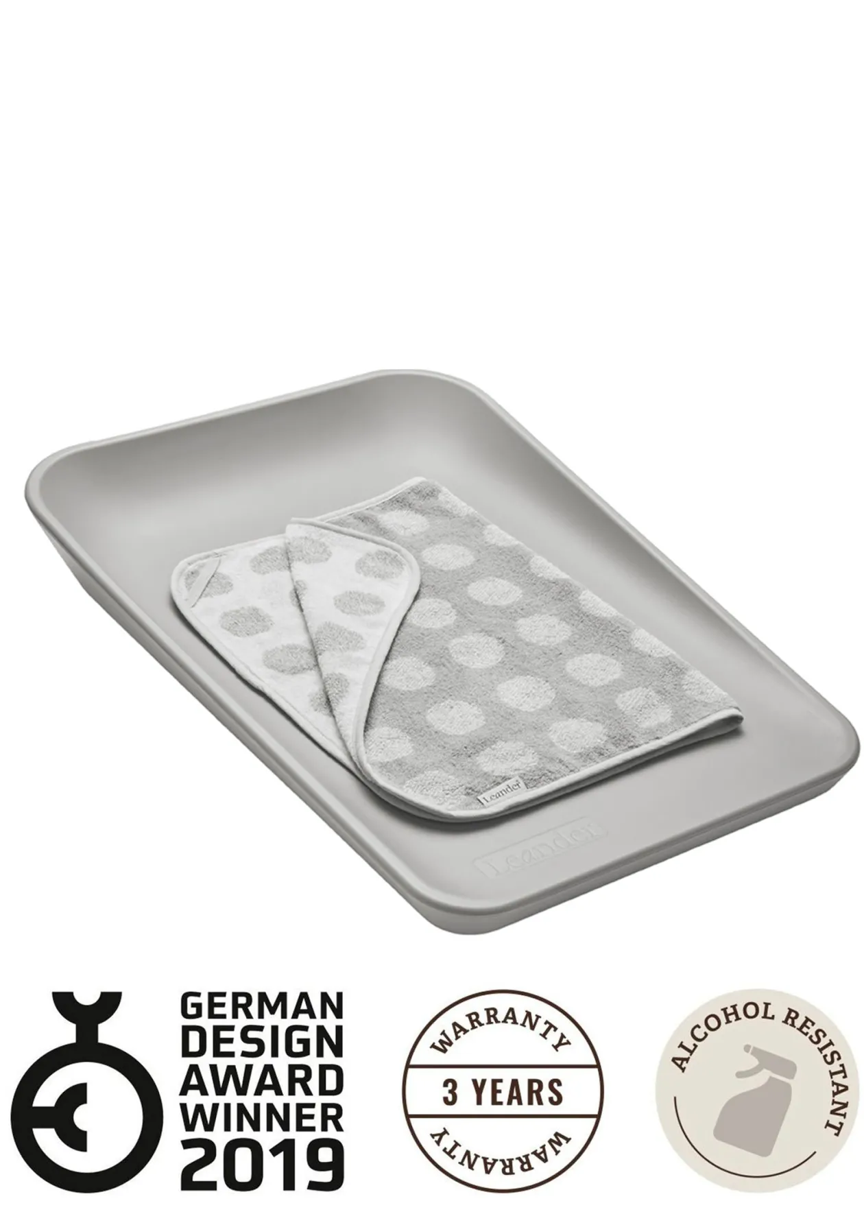 Die Wickelauflage LEANDER Matty™ ist Gewinner des German Design Award 2019 – und das zu Recht! Sie setzt nicht nur neue Standards in puncto sicheres Wickeln, sondern wird zum Lieblings-Wellnessort für dein Baby. Aus sehr weichem PUR-Formschaum in Dänemark gefertigt, fühlt sie sich für dein Baby zart, samtig und warm an und es entsteht ein wunderbar angenehmes Haut-auf-Haut-Gefühl. Ein weiterer Vorteil ist die einfache Reinigung mit Wasser oder einer milden Seifenlauge. Bei Bedarf kann die Auflage sogar mit einem Textiltuch mit Ethanol oder einem alkoholhaltigen Reiniger (max. 70 % Alkohol) desinfiziert werden. Die flexibel einsetzbare Wickelunterlage verfügt über kleine Gummifüße, die für einen stabilen Stand sorgen und ausreichend Luftzirkulation ermöglichen. Wickeln war nie komfortabler!