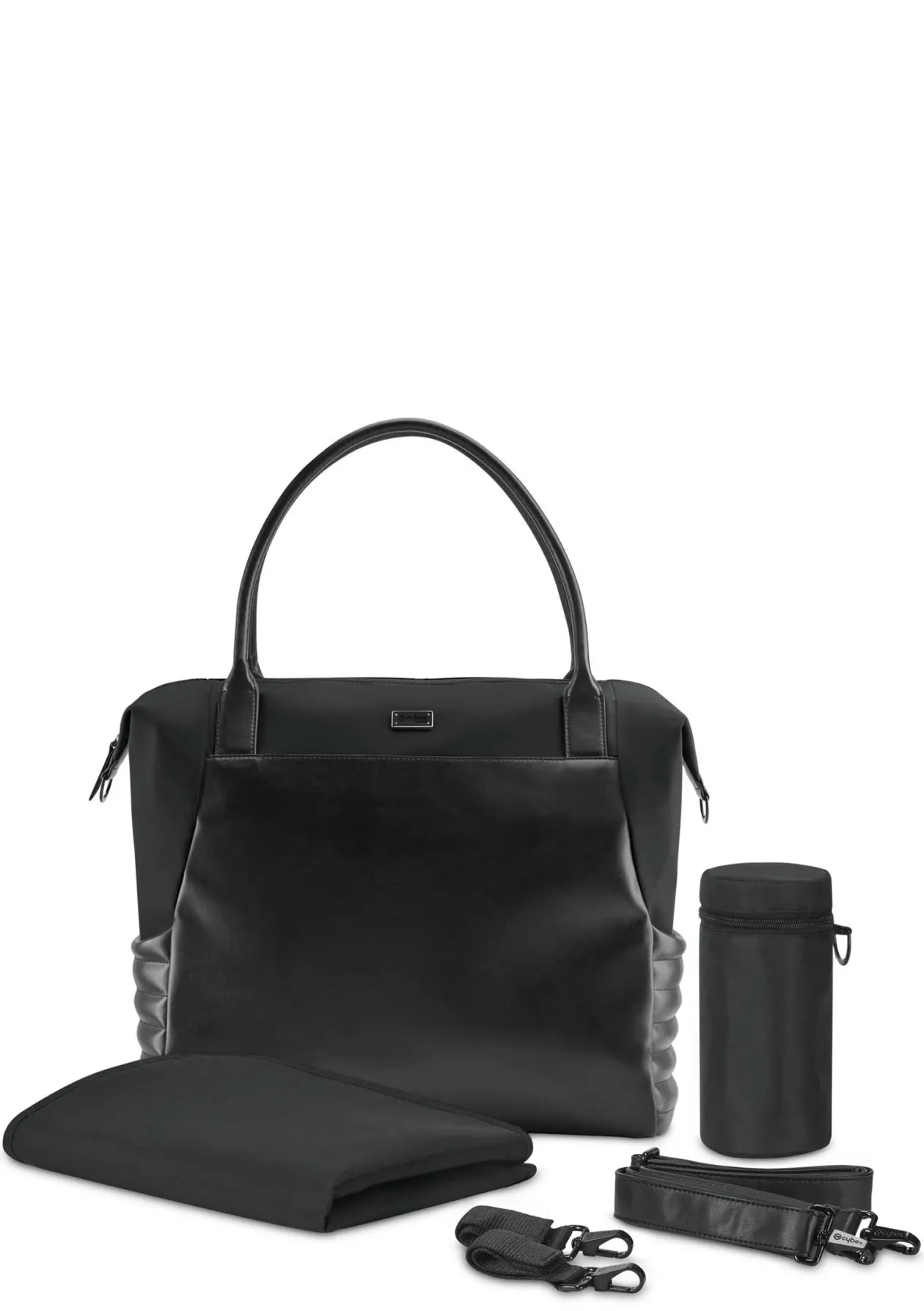 Die Wickeltasche von CYBEX hat alles: Viel Platz für alles nötige, einen abnehmbaren Flaschenhalter, ein praktisches Nassfach und dabei ist sie so elegant und zeitlos wie eine Designer Shopping Bag. Inklusive Wickelunterlage!