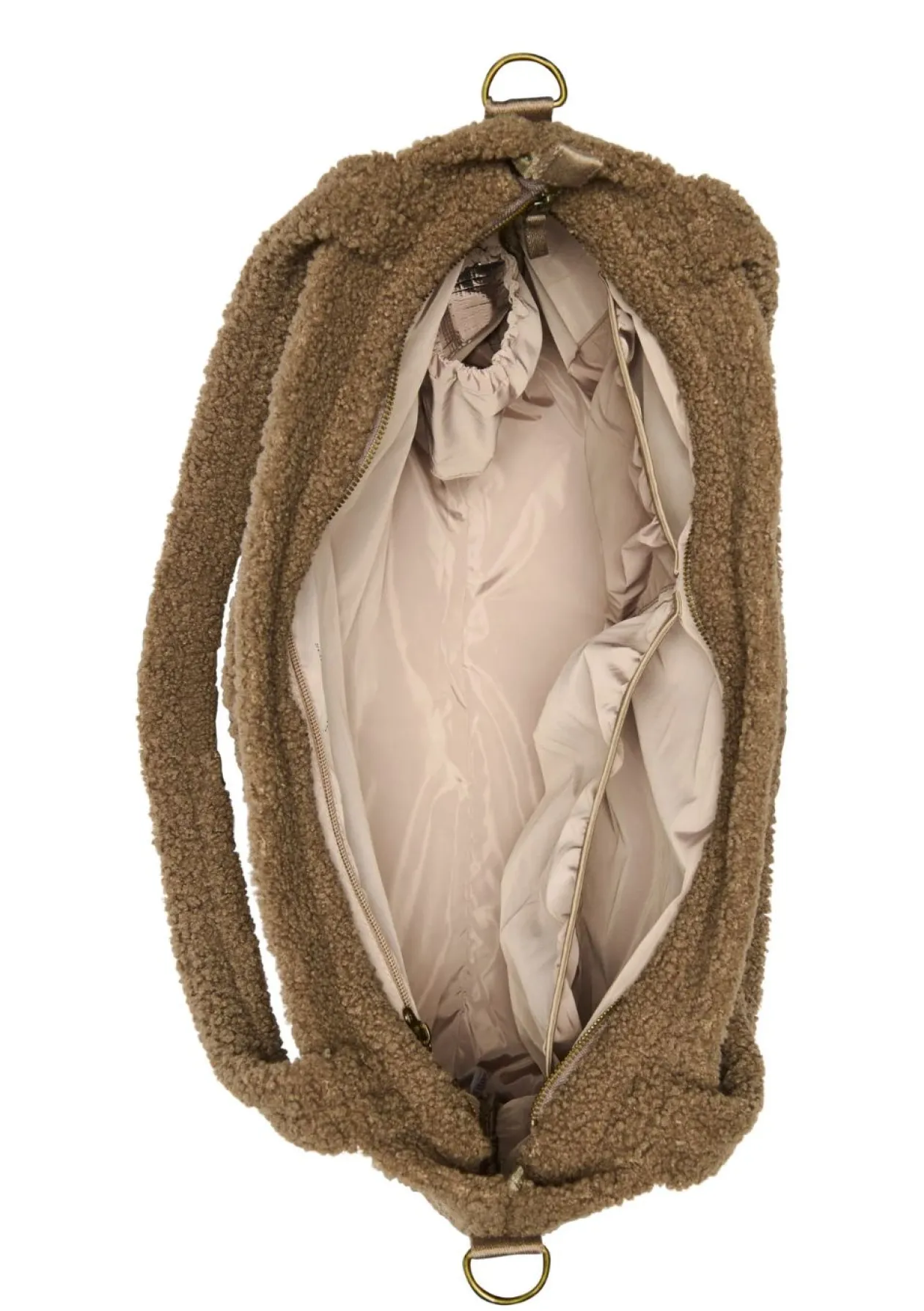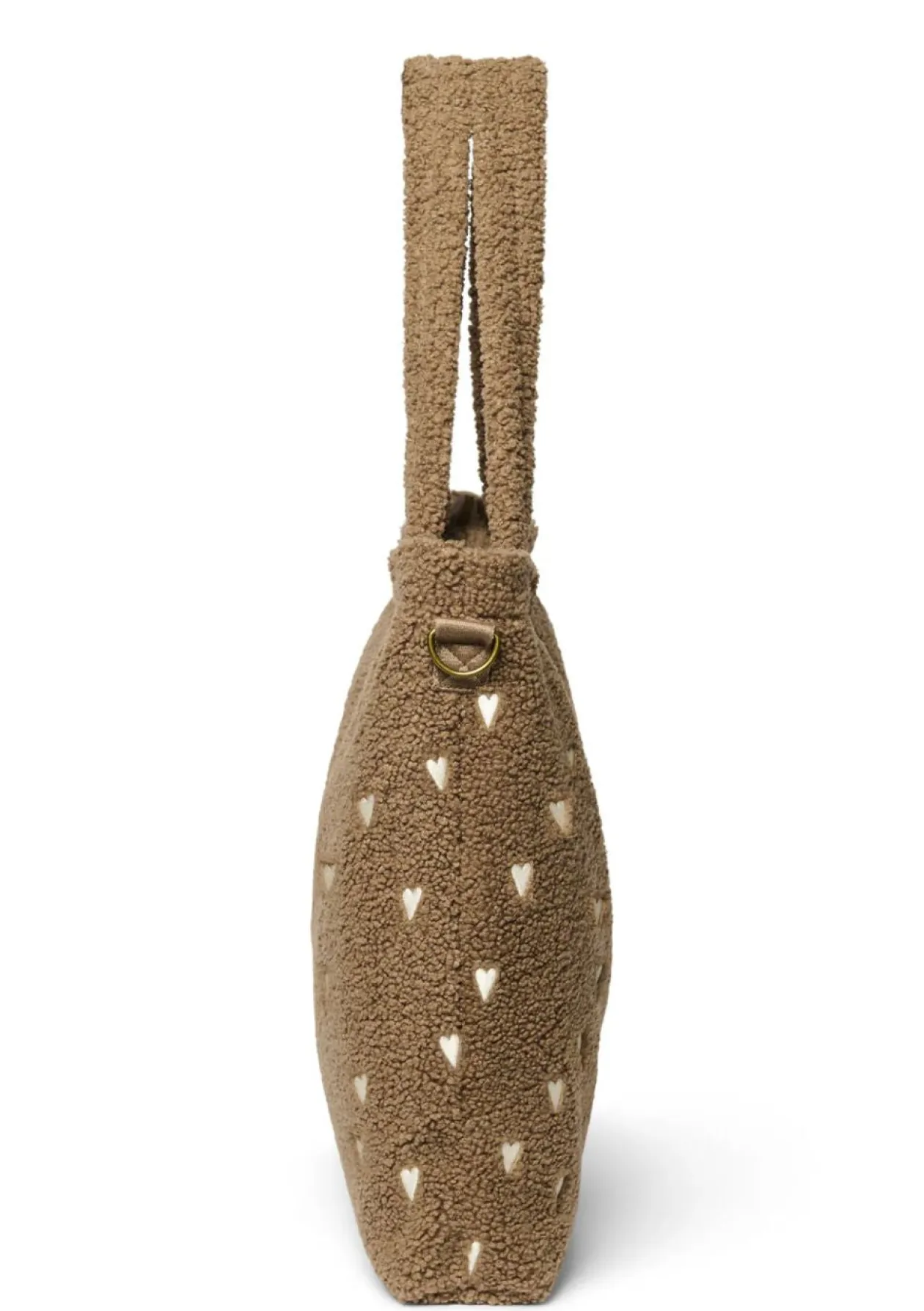 Für die frischgebackene Mama mit Stil: die STUDIO NOOS Diaper Bag mit angesagter Teddyplüsch-Oberfläche – mit Herzen bestickt!