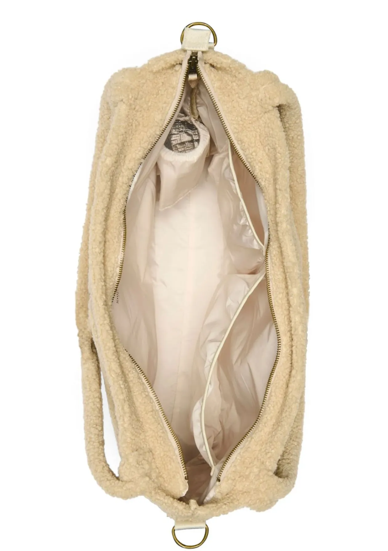 Für die frischgebackene Mama mit Stil: die STUDIO NOOS Diaper Bag mit angesagter Teddyplüsch-Oberfläche – mit Herzen bestickt!