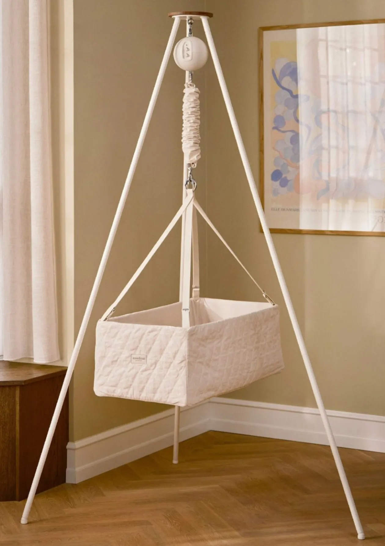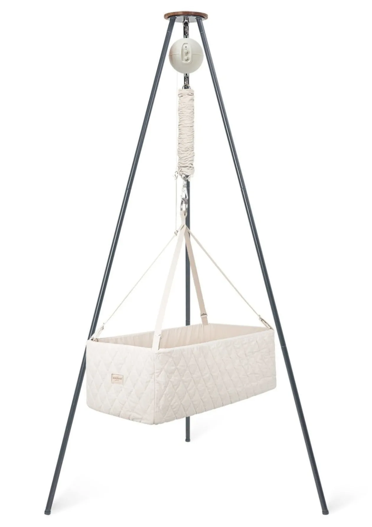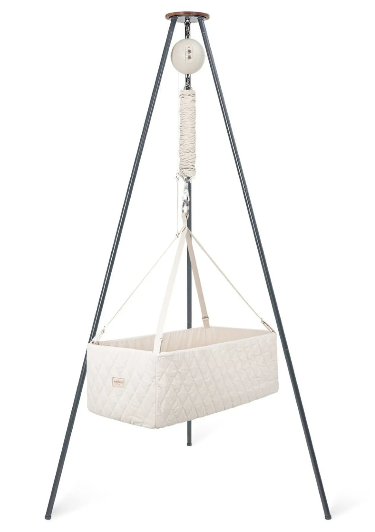 ACHTUNG! Bitte beachte, dass dies das Moonboon-Gestell ist, das im Dezember 2022 auf den Markt kam und mit der (ovalen) Moonboon Wiege kompatibel ist. Frühere Gestelle sind nicht mit der (ovalen) Wiege kompatibel, sondern nur mit der Federwiege.
