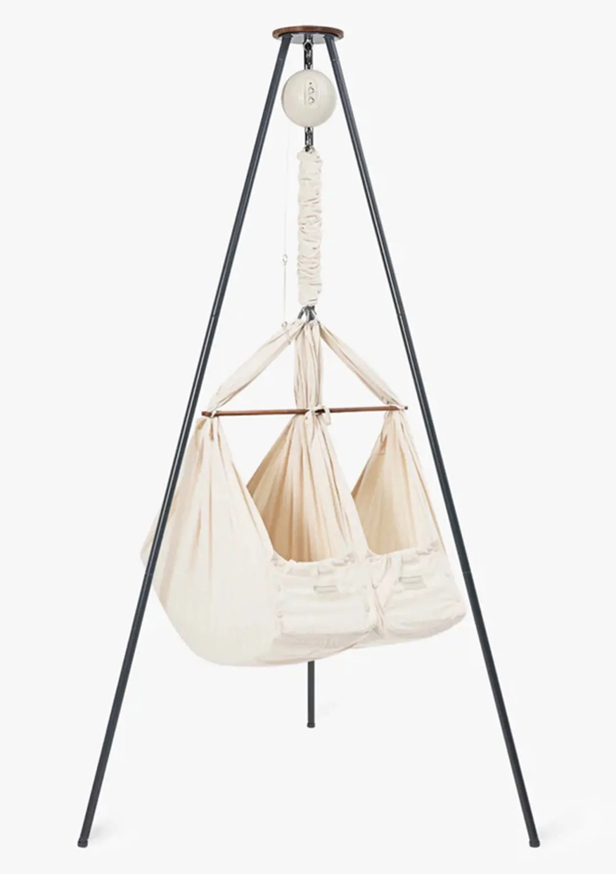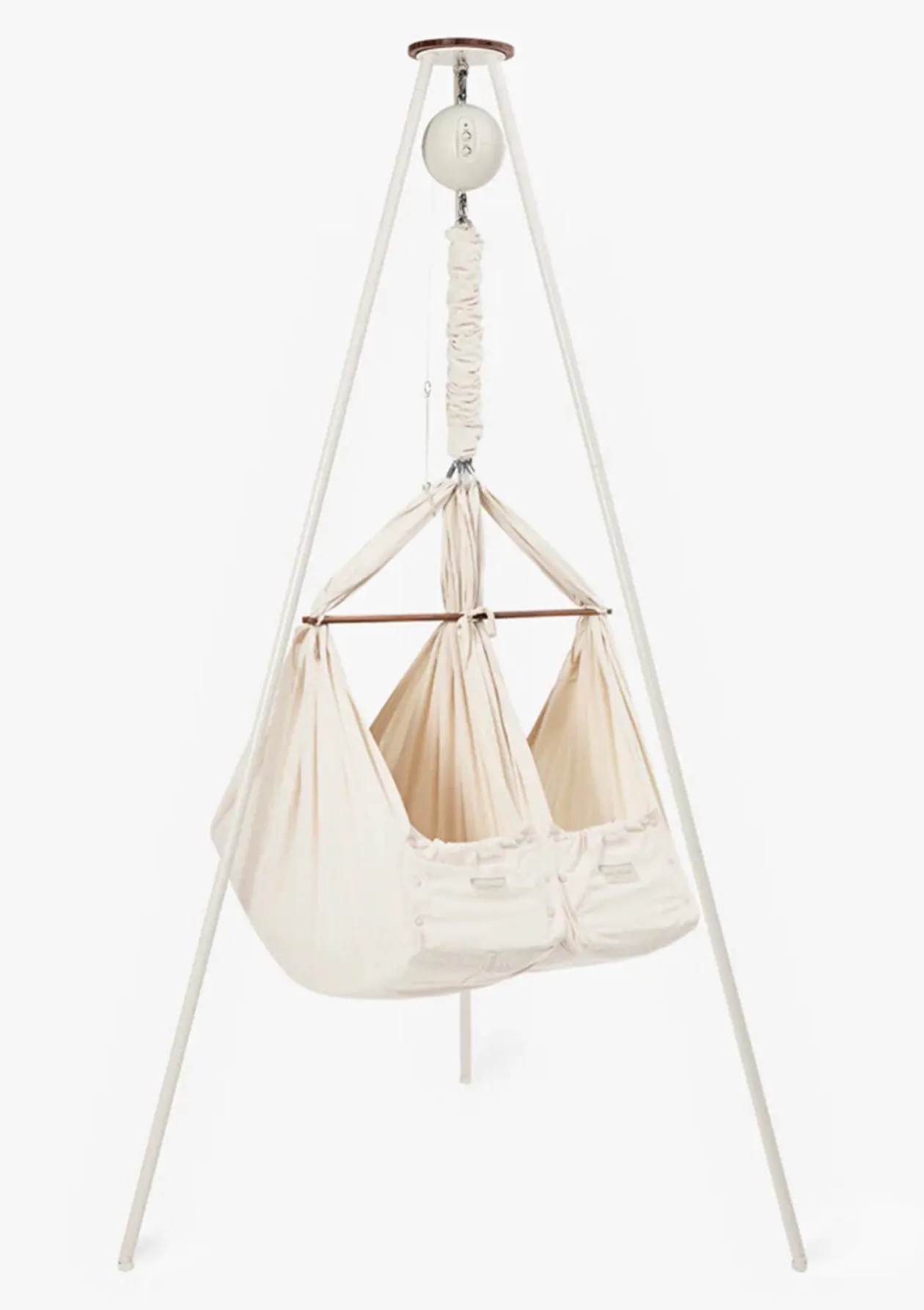 - die Wiege kann freihängend oder mit dem stilvollen Gestell in weiß oder grau verwenden werden (separat erhältlich)
