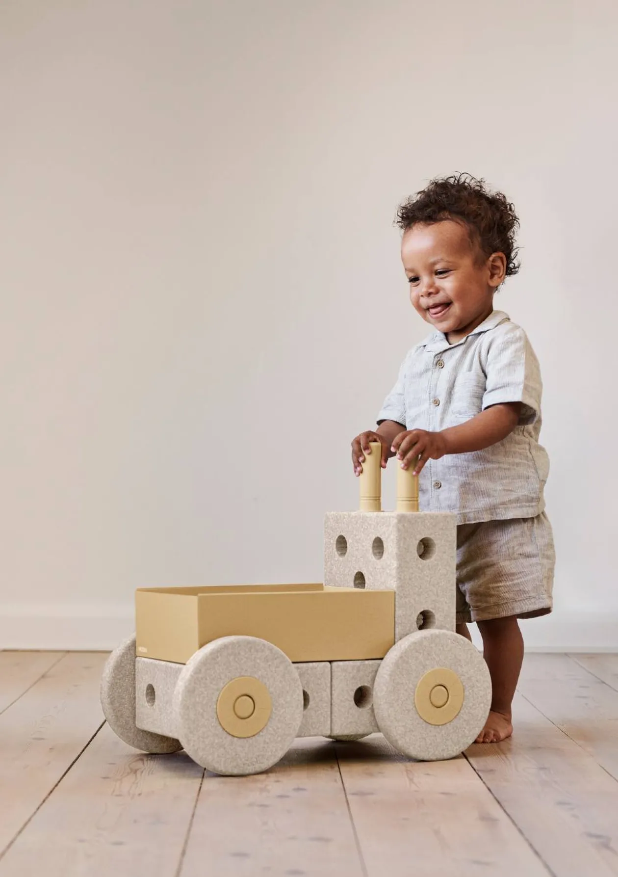 Insgesamt 22 Elemente, darunter Schaumstoffbausteine, Verbindungsstifte und Schaumstoffräder hält das dänische Label in diesem Bausatz-Set für den Babywalker für euch bereit. Wie alle Bauteile der Marke, sind auch sie aus umweltfreundlichen, recycelbaren Materialien gefertigt. Die modulare Lauflernhilfe lässt sich einfach zusammenbauen und schon kann dein Liebling die ersten Gehversuche unternehmen – so macht Laufenlernen Spaß! Und danach? Baut ihr den Lauflernwagen im Handumdrehen zur Schubkarre oder zum praktischen Tritthocker um oder ergänzt die Teile um weiteres Modu Bauspielzeug für grenzenlose Möglichkeiten!