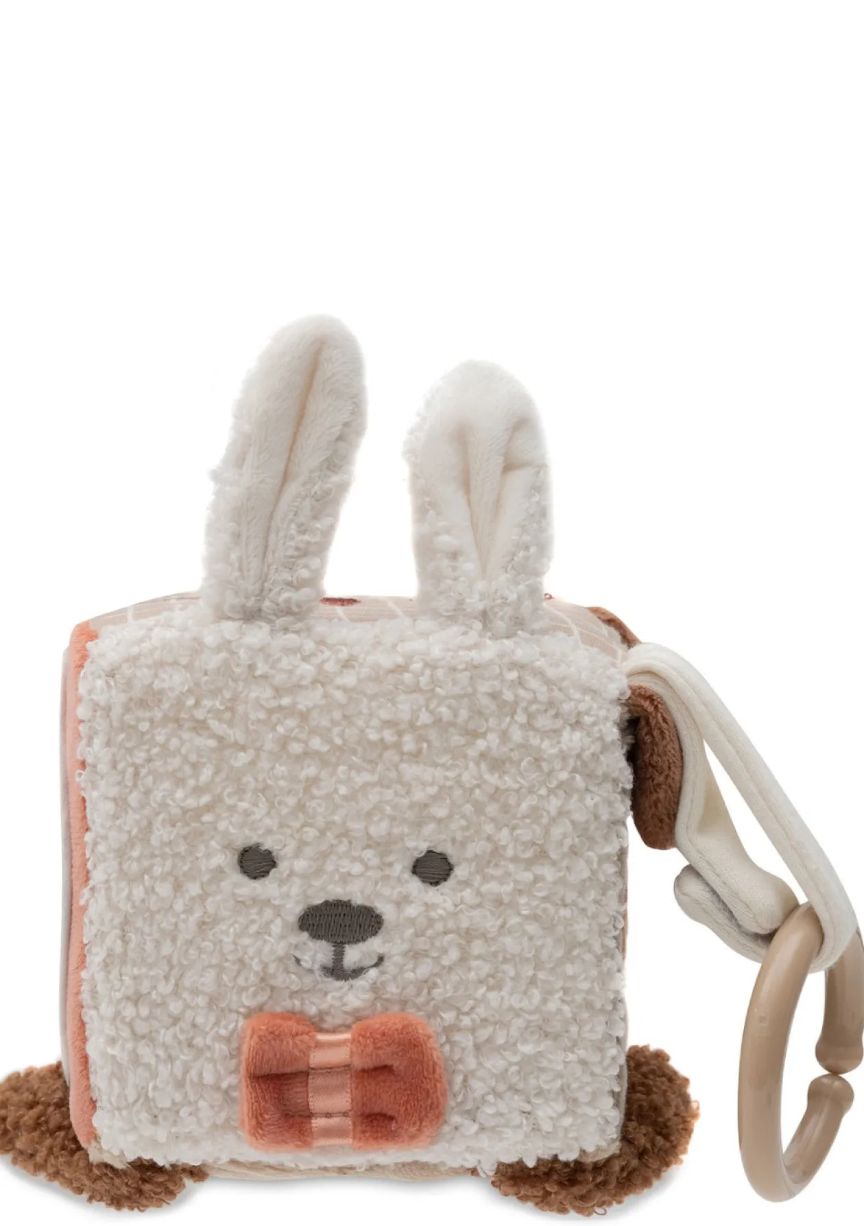 Versteckte Knisterelemente, ein kleiner Spiegel, Schlaufen zum Greifen und süße Tierfreunde machen den Würfel zu einem abwechslungsreichen Spielzeug, das Babys Neugier weckt und lange begeistert – ob zuhause, unterwegs oder als liebevolle Geschenkidee zur Geburt.