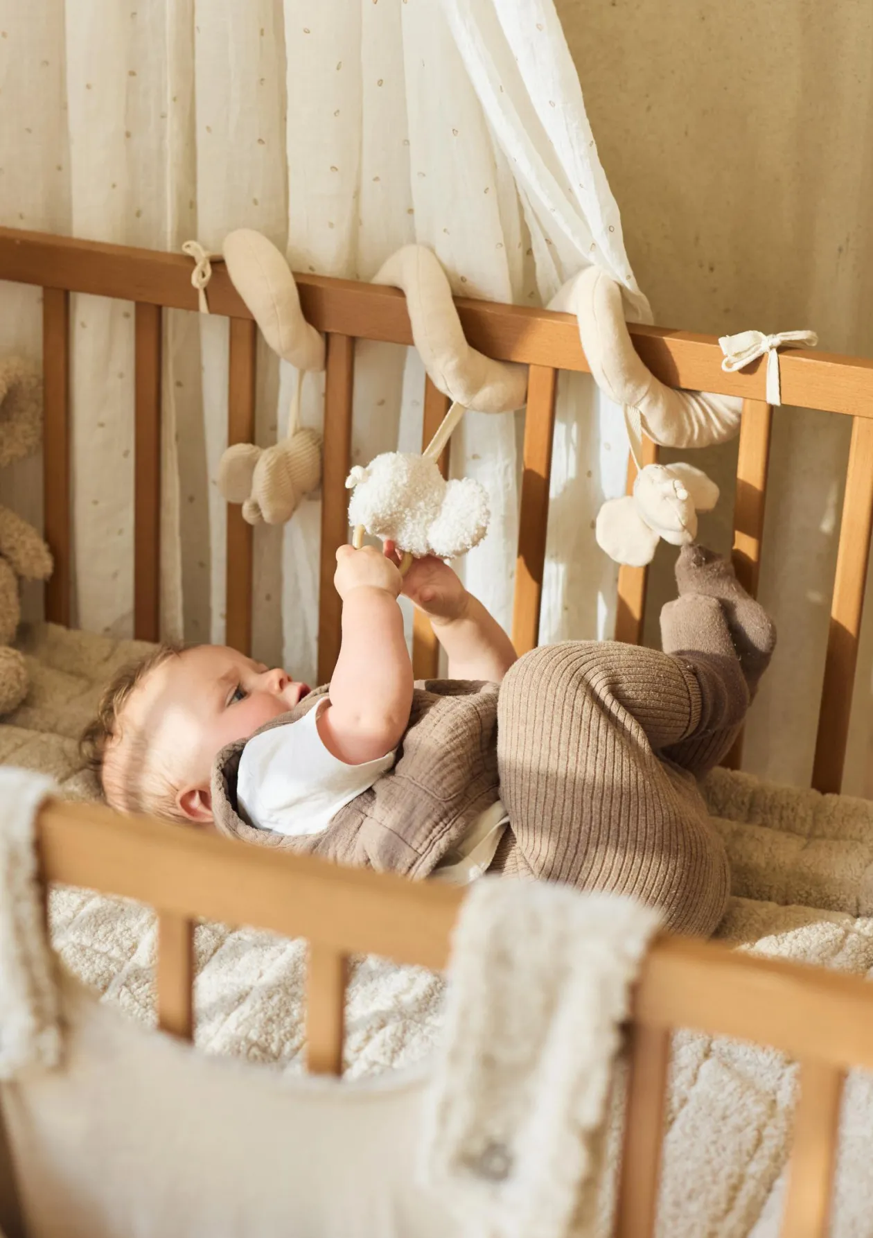 Mit knisternden Elementen, einem Spiegel, verschiedenen Stoffstrukturen und den niedlichen Elefantenfiguren regt die Spirale spielerisch die motorische Entwicklung und die visuelle sowie sensorische Wahrnehmung deines Babys an.