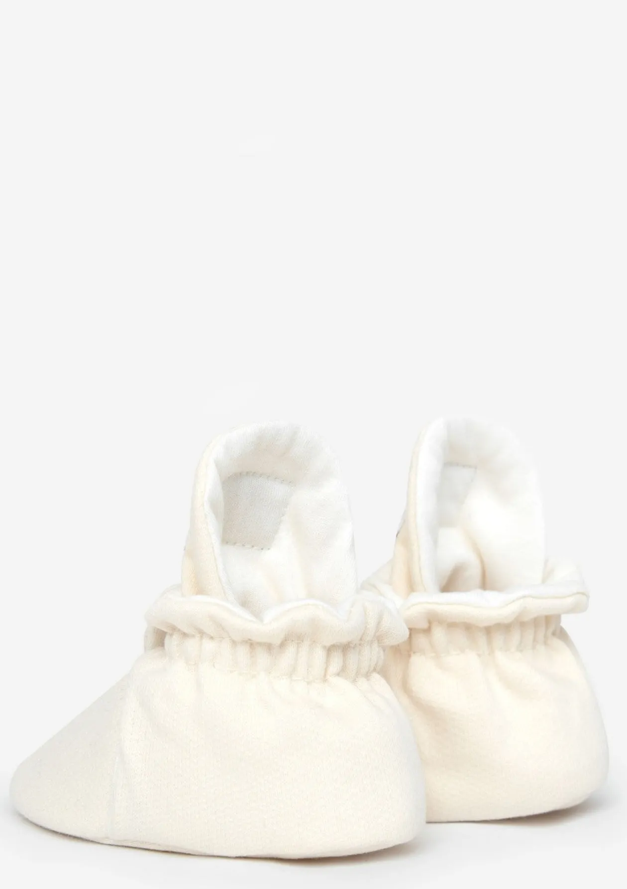 Diese niedlichen Babyschuhe von KINGS & REBELS sind dank des praktischen Druckknopf-Verschlusses ruckzuck über den kleinen, strampelnden Babyfuß gezogen – und rutschen auch nicht wieder ab! Die hautfreundlichen und atmungsaktiven Eigenschaften der umweltfreundlichen Baumwolle erzeugen ein besonders angenehmes Tragegefühl. Da sich die Booties an die individuelle Fußform deines Kindes anpassen, schränken sie die gesunde Entwicklung der Kinderfüße nicht ein und sind superbequem.
