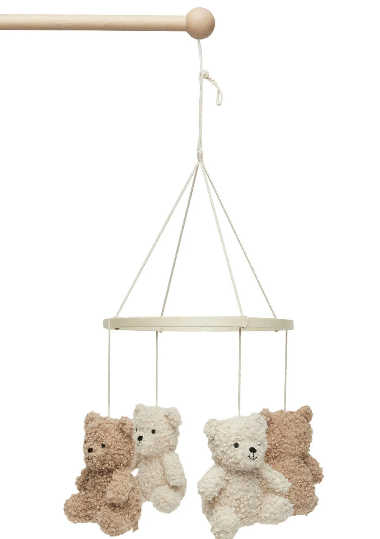Das schöne Mobile mit niedlichen Bär-Anhängern sorgt für Spaß und ruhigen Schlaf im Babybett. Die flauschigen Fellfreunde wachen über dein Baby und schenken süße Träume. Auch ein tolles Geschenk zur Geburt!