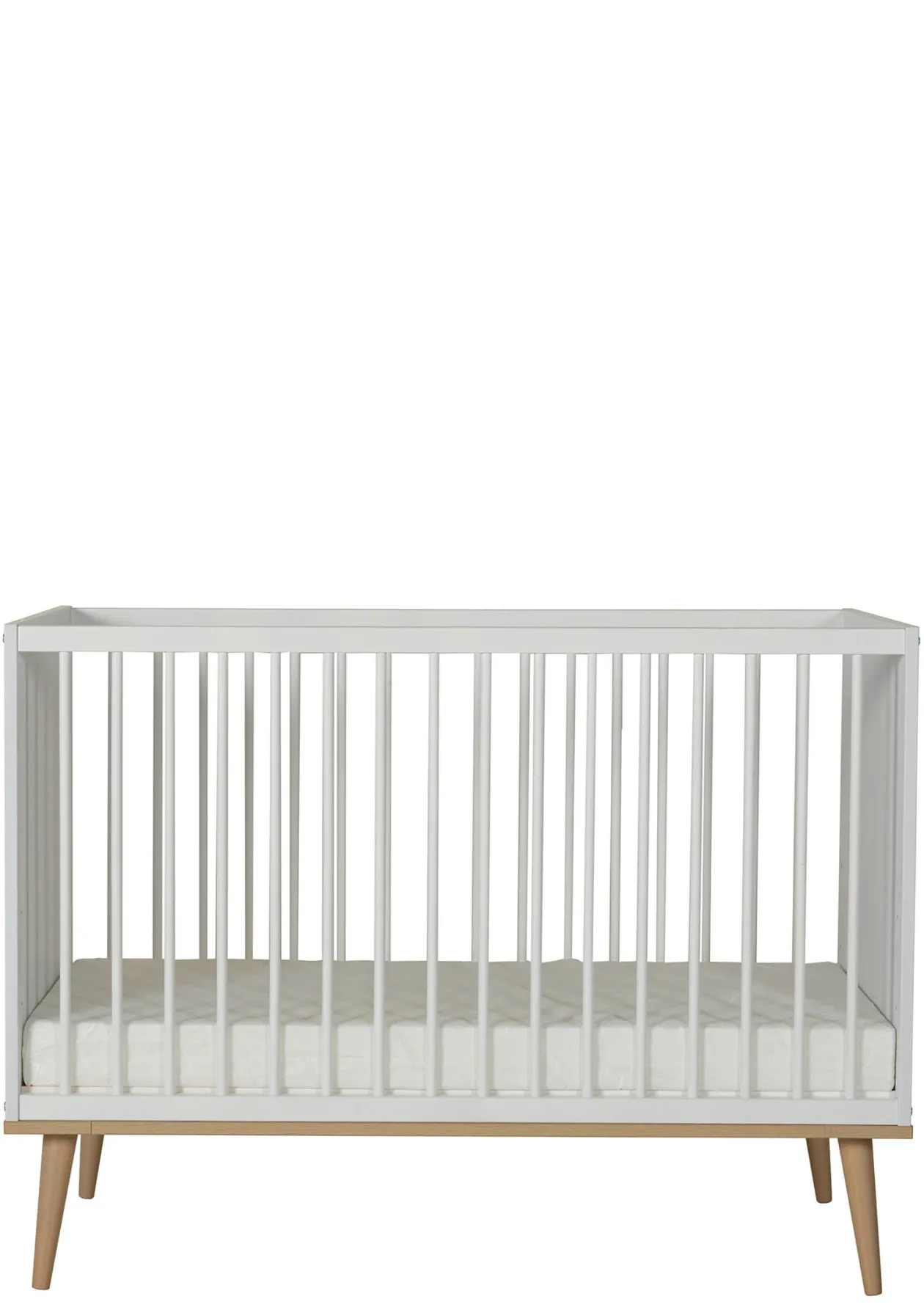 Dieses traumhafte schöne QUAX Babybett mit den für den nordischen Stil charakteristischen Beinen bietet einen gemütlichen Rückzugsort für all die vielen Schläfchen, die dein Baby benötigt. Das Modell macht optisch was her und vereint Sicherheit und Ästhetik mit durchdachter Funktionalität. Das Babybett Flow verfügt über drei verstellbare Matratzenhöhen (30 cm, 45 cm und 60 cm), sodass es sich leicht an die Bedürfnisse deines heranwachsenden Babys anpassen lässt und dir höchsten Komfort bietet. Ein wunderbar Begleiter von der Geburt bis ins Kleinkindalter.