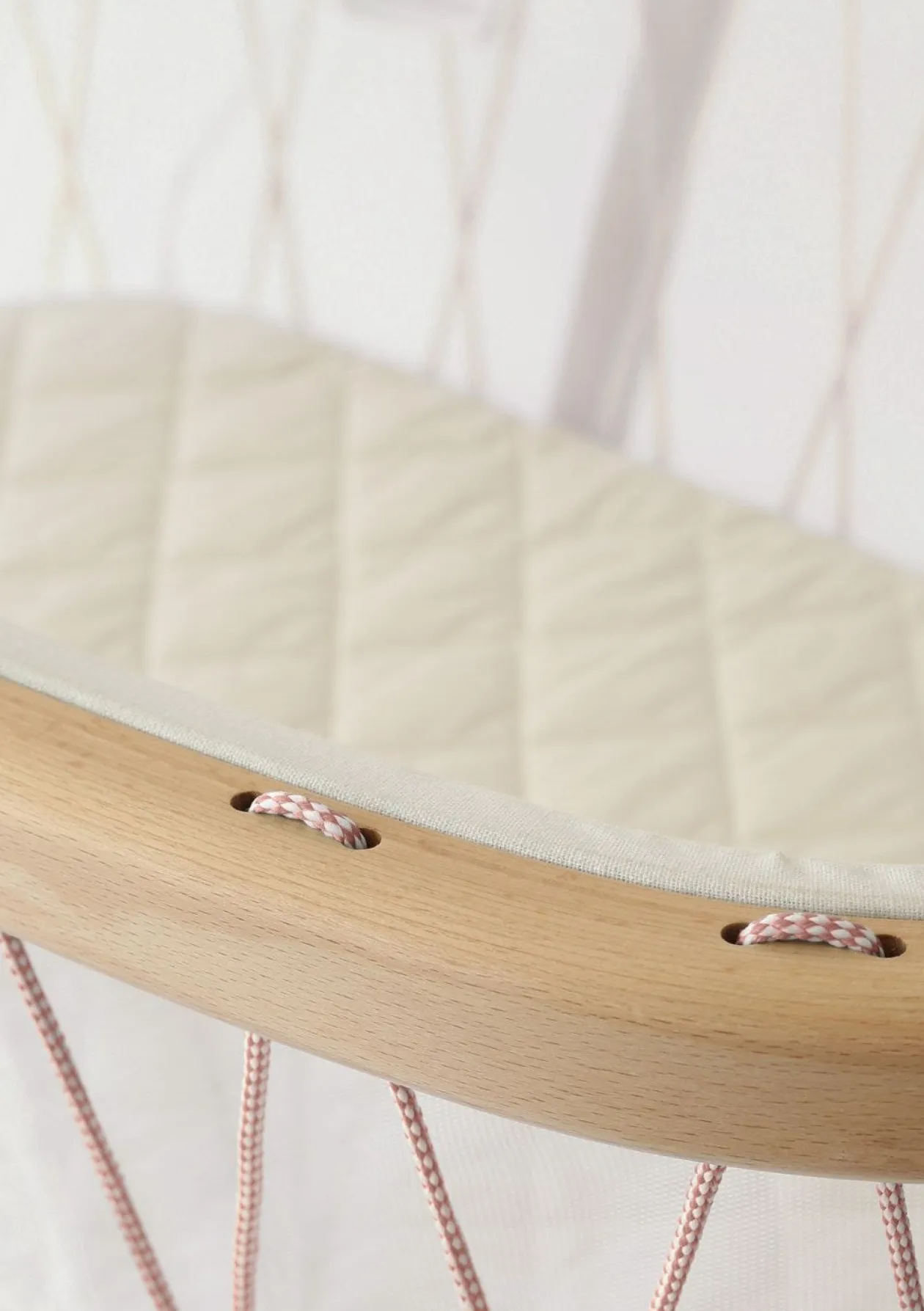 Das Babybettchen ist nach der Zeit im Mutterleib der zentrale Ort für dein Kleines. Diese anmutige Babywiege ist ein stilvoller und zuverlässiger Begleiter für die ersten Monate nach der Geburt. Das hochwertige Wiegengestell wird von einem filigranem Schnürgeflecht ergänzt. Dieses interessante Zusammenspiel erzeugt eine besondere Leichtigkeit und verleiht der Wiege das gewisse Etwas. Die Schnürung nehmen die werden Eltern beim Aufbau des Bettchens übrigens selbst vor. Dem Designer zufolge soll dies den Nestbau versinnbildlichen. Was für eine schöne Idee!