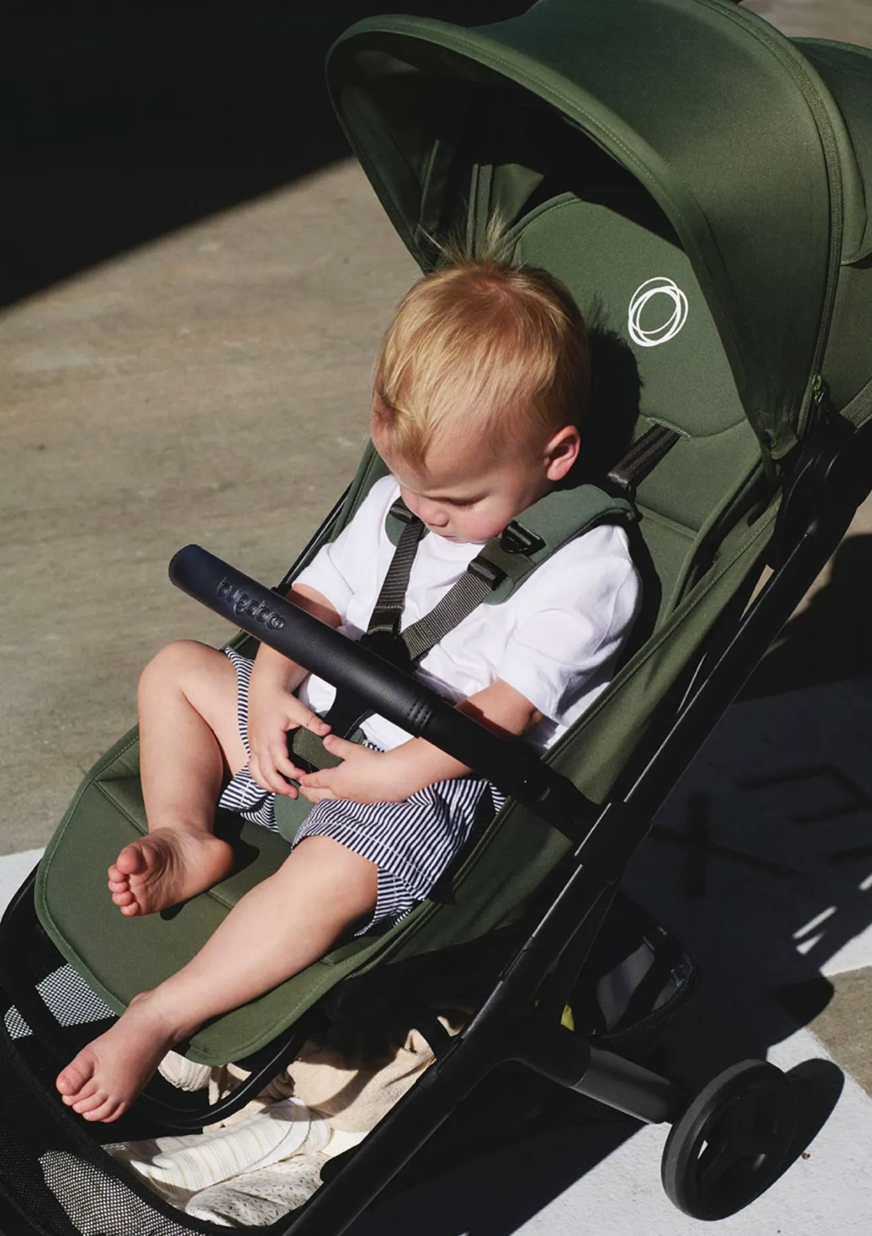 Auch optisch überzeugt der Butterfly 2: Ein überarbeiteter Rahmen, dezente schwarze Bedientasten sowie ein weicher, farblich abgestimmter Sicherheitsgurt verleihen dem Buggy ein harmonisches Gesamtbild. Abgerundet wird das Design durch ein abnehmbares Sonnenverdeck und ein edles Silikon-Branding im Premium-Look – typisch Bugaboo.