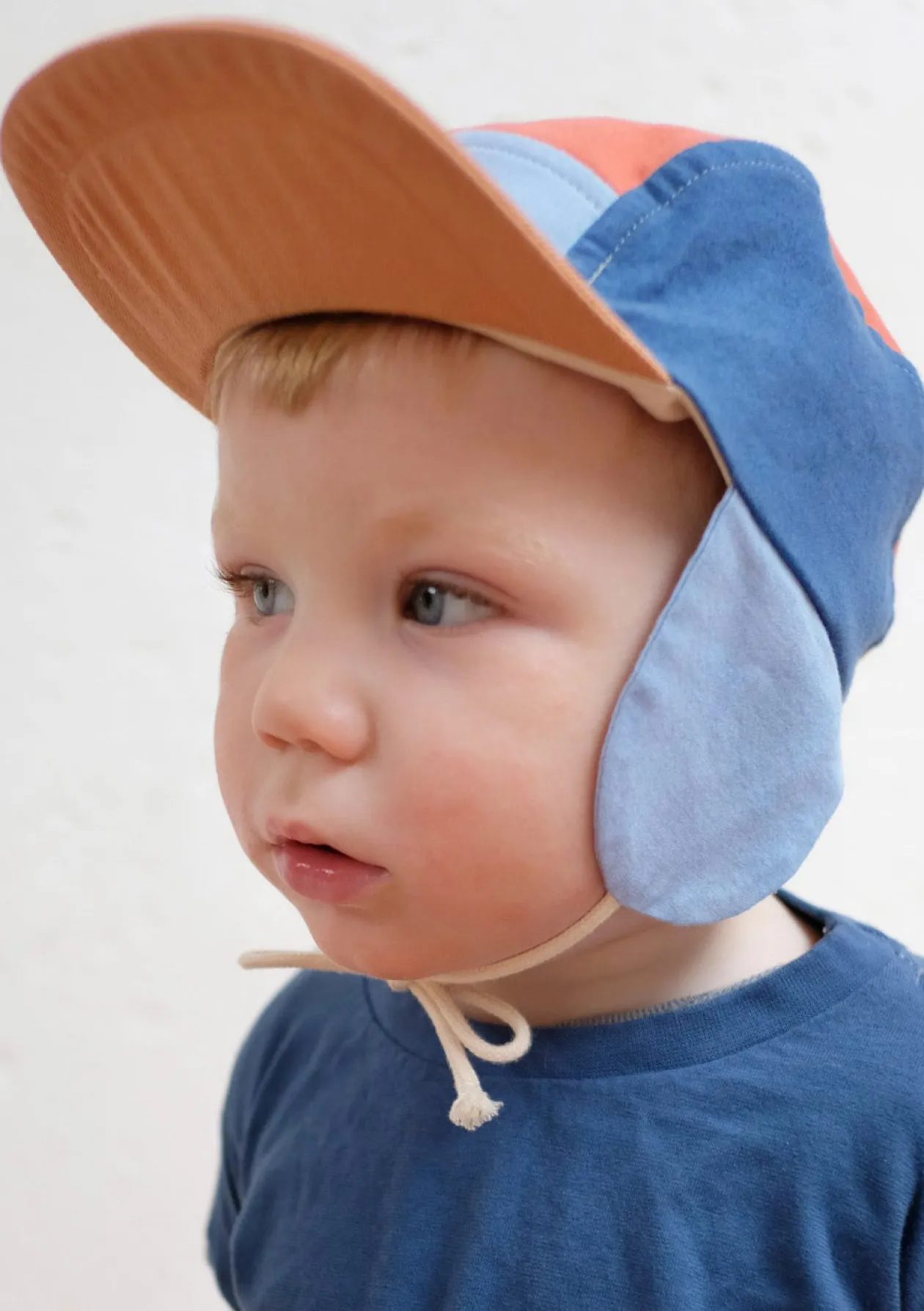 - breiter Schirm und Ohrenklappen (zum Schutz vor Sonne/Wind) mit Bändern für optimalen Halt