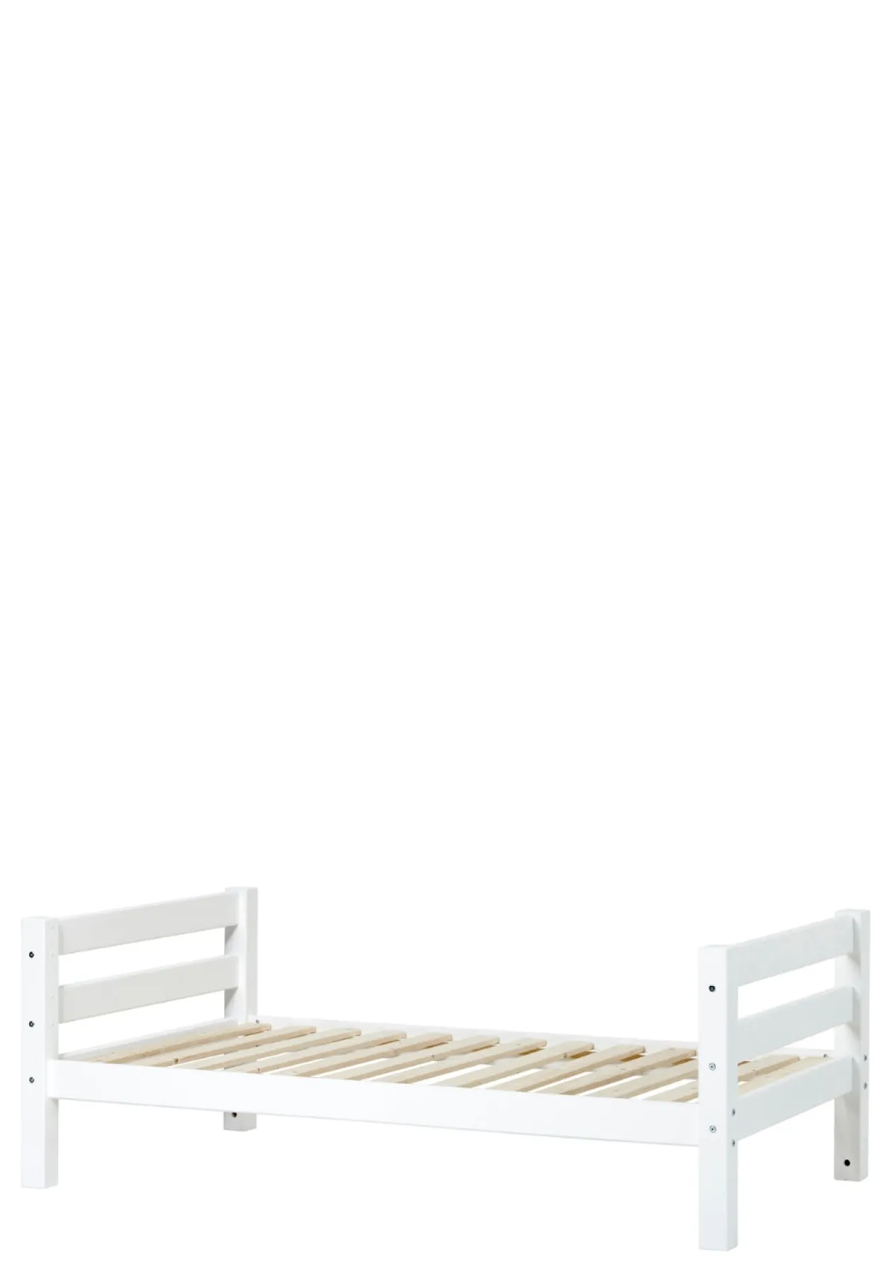 Dieses Einzelbett ist ein guter Solo-Künstler, kann aber zu einem späteren Zeitpunkt mit dem entsprechendem Ergänzungsmodul auch ganz einfach in ein Etagenbett für Geschwister umgebaut werden. Wenn du es als solides Einzelbett verwenden möchtest, berücksichtige, dass es über keine Bettumrandung verfügt und somit erst für Kinder geeignet ist, die bereits ohne Bettgitter schlafen können. Alternativ findest du in unserem Onlineshop auch ECO Luxury Juniorbetten mit kleinem oder großem Rausfallschutz.