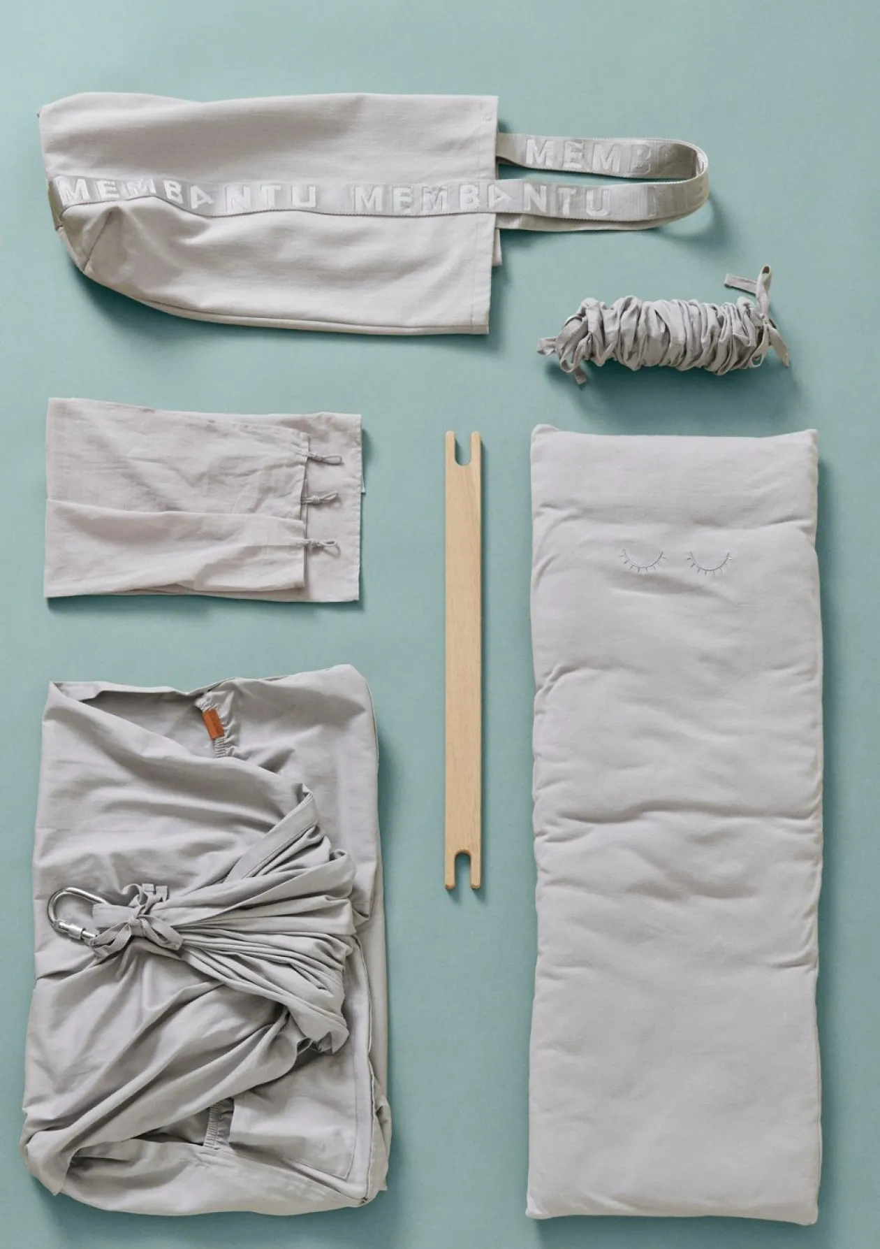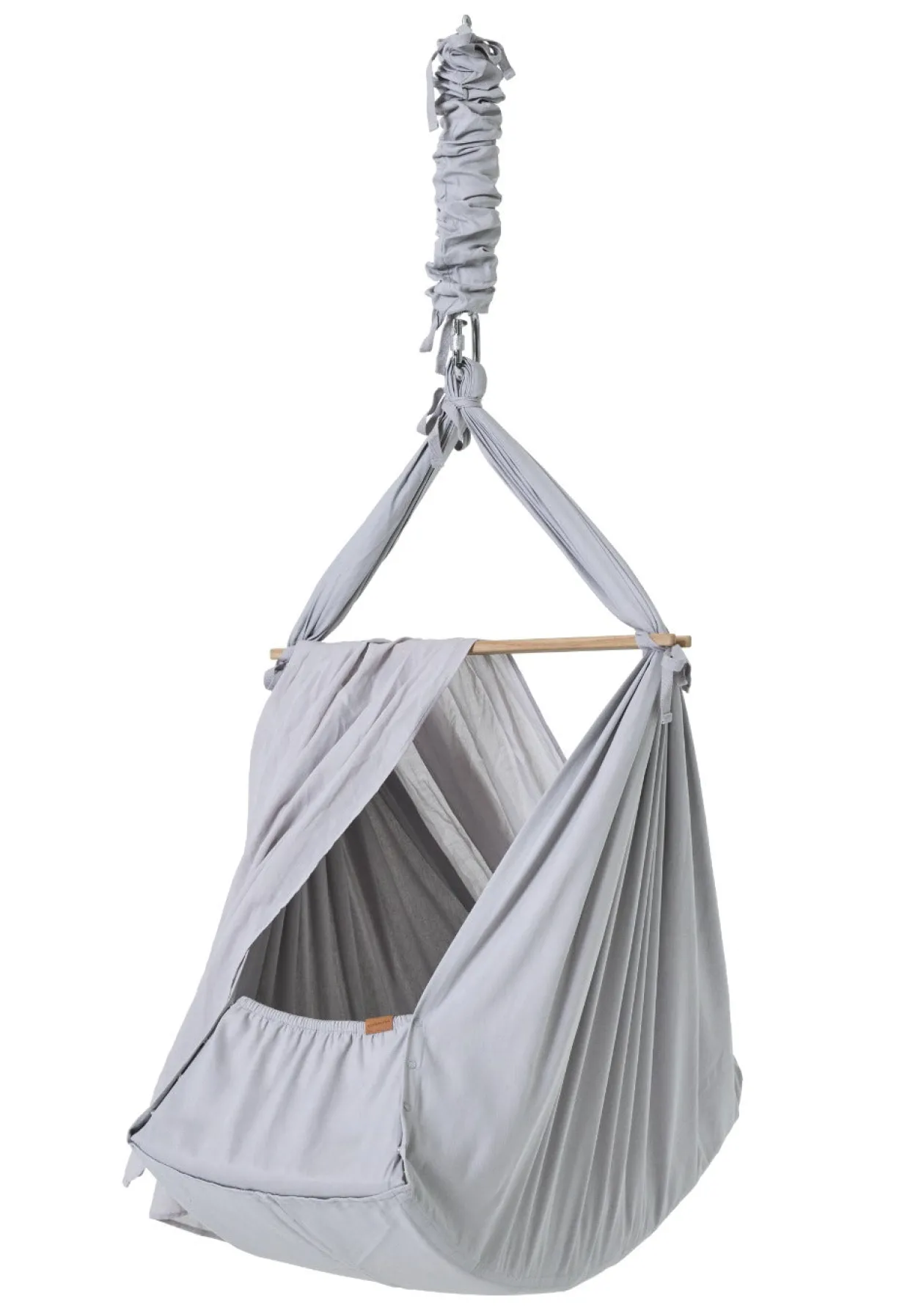 - Premium-Federwiege aus ökologischer Baumwolle inkl. Querstange, Feder mit Sicherungsgurt, Stoffbeutel, Woll-Matratze mit abnehmbarem Bezug, Spannbettlaken mit Stickerei, Karabiner mit Schraubverschluss und Gummiisolierung