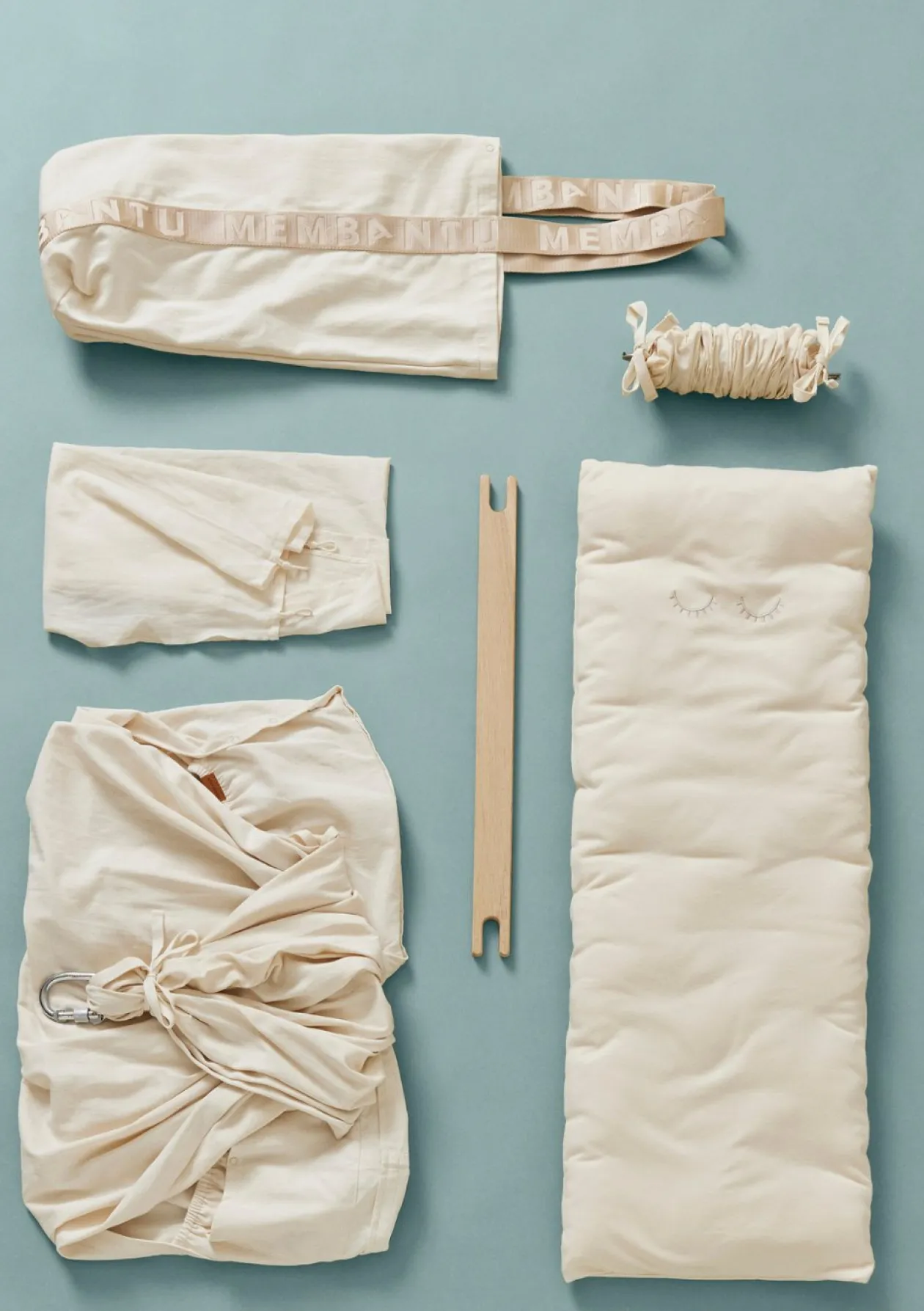 - Premium-Federwiege aus ökologischer Baumwolle inkl. Querstange, Feder mit Sicherungsgurt, Stoffbeutel, Woll-Matratze mit abnehmbarem Bezug, Spannbettlaken mit Stickerei, Karabiner mit Schraubverschluss und Gummiisolierung