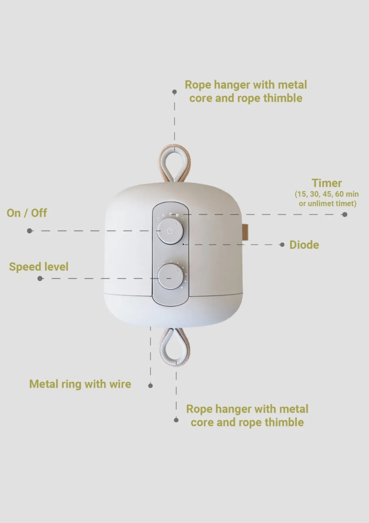 - Schaukeln Sie die Federwiege nicht manuell, wenn das Kabel des Wiegenmotors an der Wiege befestigt ist.