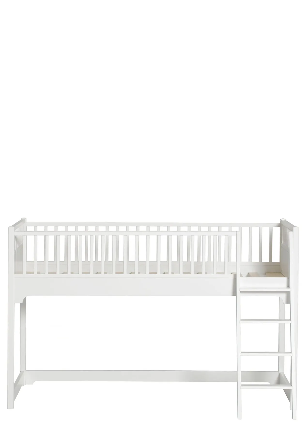Das halbhohe Hochbett aus der Seaside Collection von OLIVER FURNITURE bietet eine einzigartige Möglichkeit, nicht nur einen schönen Schlafplatz im Kinderzimmer zu gestalten, sondern auch das kindliche Bedürfnis nach Nähe, Komfort und Sicherheit zu erfüllen. Unter dem Bett kann dein Kind ein kleines gemütliches Versteck zum Spielen oder Entspannen bauen, oder einen Freund übernachten lassen.