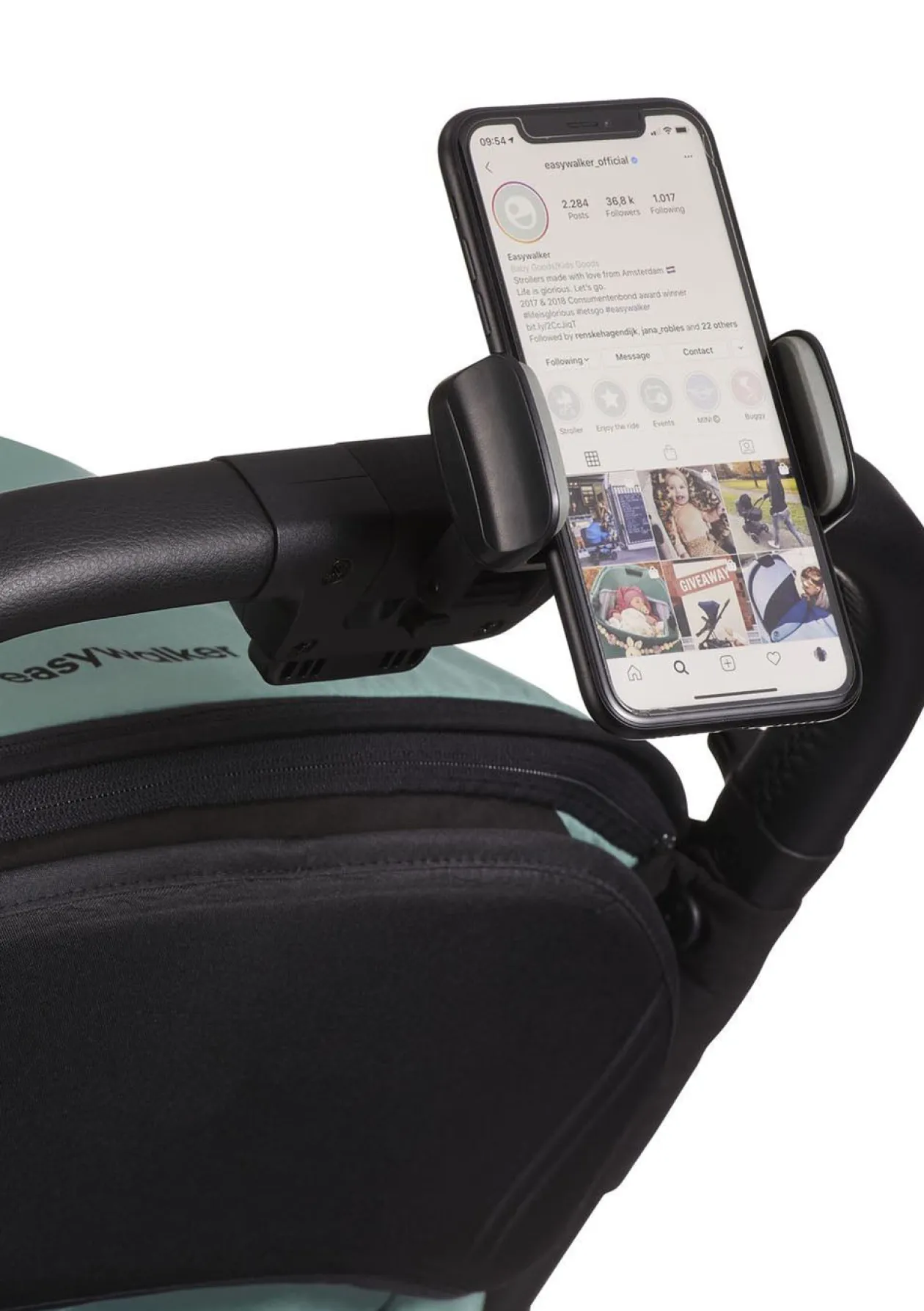 Die Halterung für dein Smartphone von EASYWALKER ist einfach super praktisch und ein tolles Accessoires für deinen Buggy oder Kinderwagen (mit UAS-Vorrichtung).