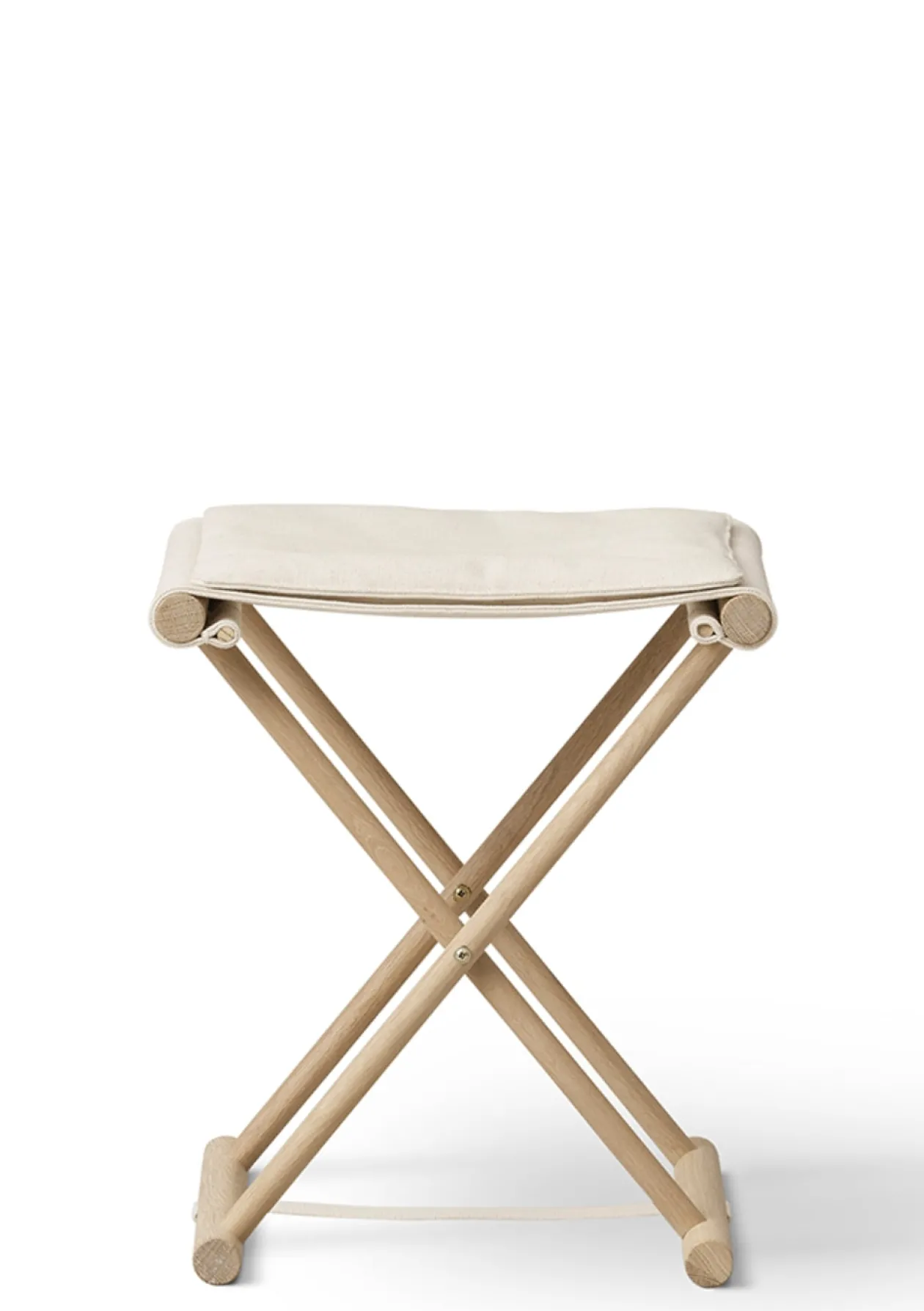 Mit klassischem X-Gestell aus Eichenholz und einer bequemen Sitzfläche aus ungefärbtem Canvas fordert dieser Hocker aus der neuen Kollektion des beliebten dänischen Labels zum Platz nehmen auf. Die stilvolle Sitzgelegenheit, die es in zwei Größenvarianten gibt, stellt eine schöne Ergänzung zum Camp Junior-Schreibtisch dar, macht aber auch solo eine gute Figur. Dank des leichten Gewichts kann der Hocker von Kindern problemlos umplatziert werden und wenn er gerade nicht benötigt wird, lässt er sich sogar zusammenklappen und platzsparend verstauen.