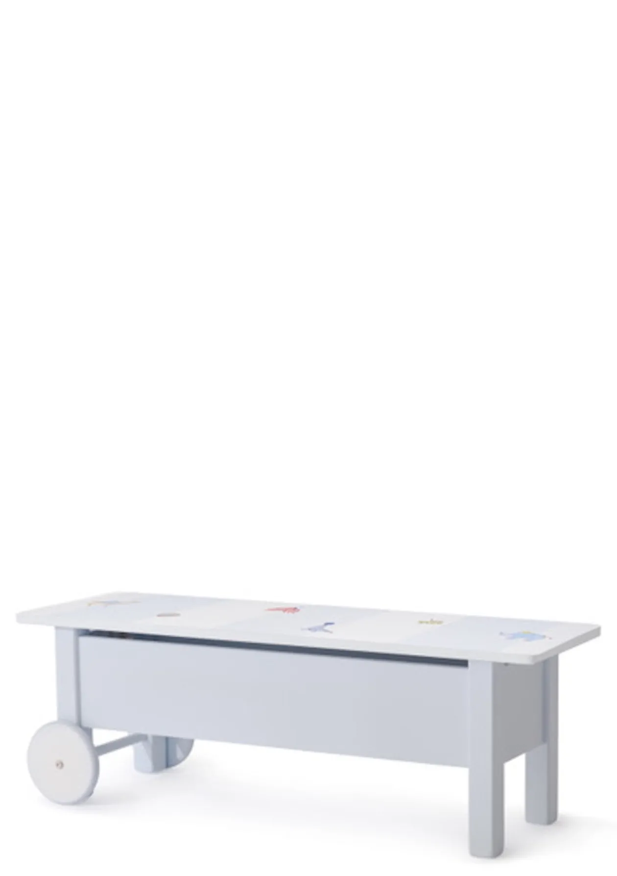 Mobile Sitzgelegenheit mit Stauraum: die Kinderbank von ISLE OF DOGS DESIGN – wunderschön handbemalt mit Motiven nach Wahl!
