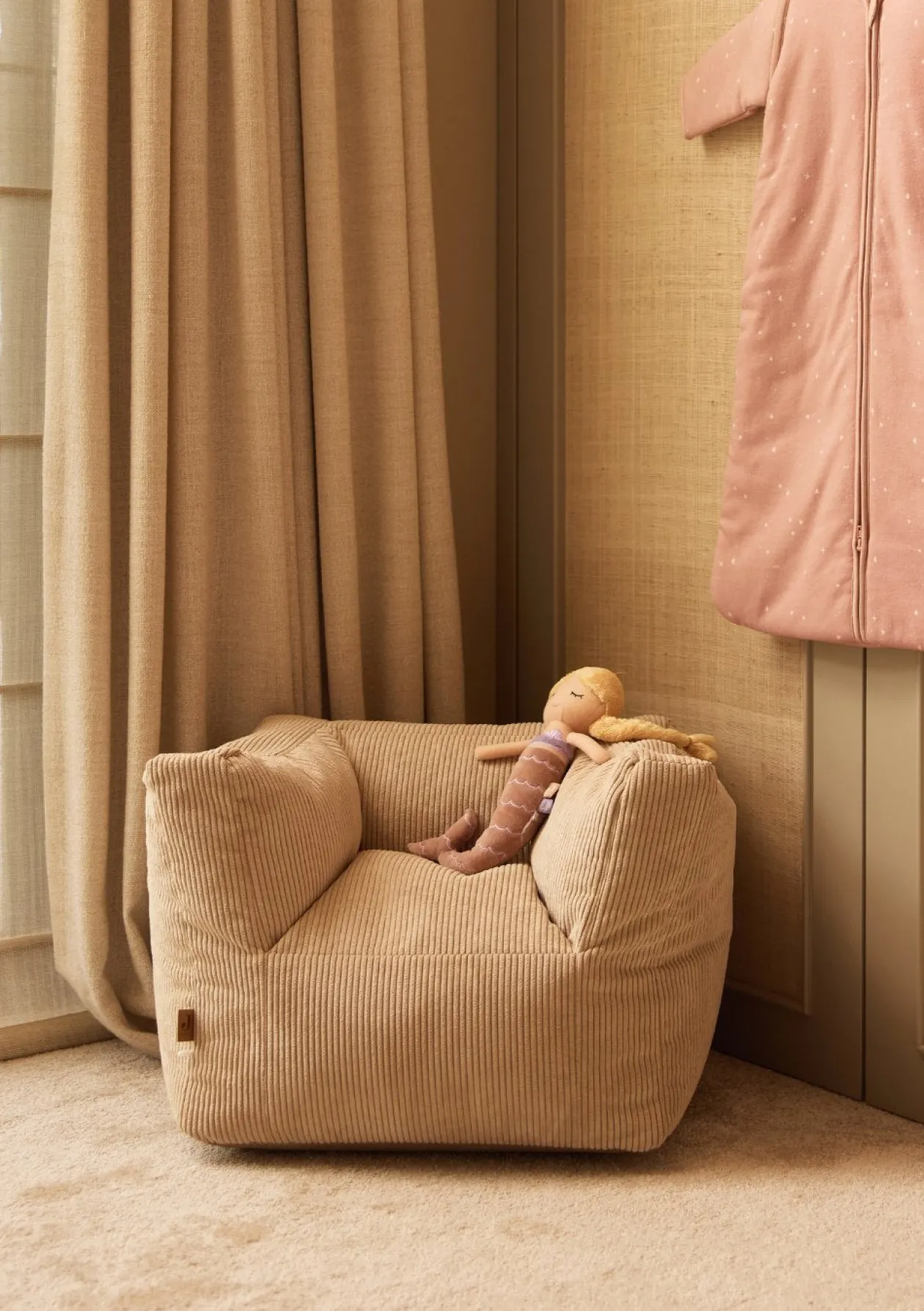 Dieser wunderbar weiche Kindersessel aus dem Hause JOLLEIN ist eine tolle Ergänzung für jedes Kinderzimmer. Das bequeme Sitzmöbel lädt schon die Kleinsten zum Hineinsetzen und Verweilen ein – entspannen, spielen, (Bilder-)Bücher anschauen oder lesen. Der stilvolle Sitzsack, der sich flexibel in verschiedene Räume mitnehmen lässt, passt zu jedem Wohnstil und hat definitiv das Zeug zum Lieblingsmöbel deines Kindes.