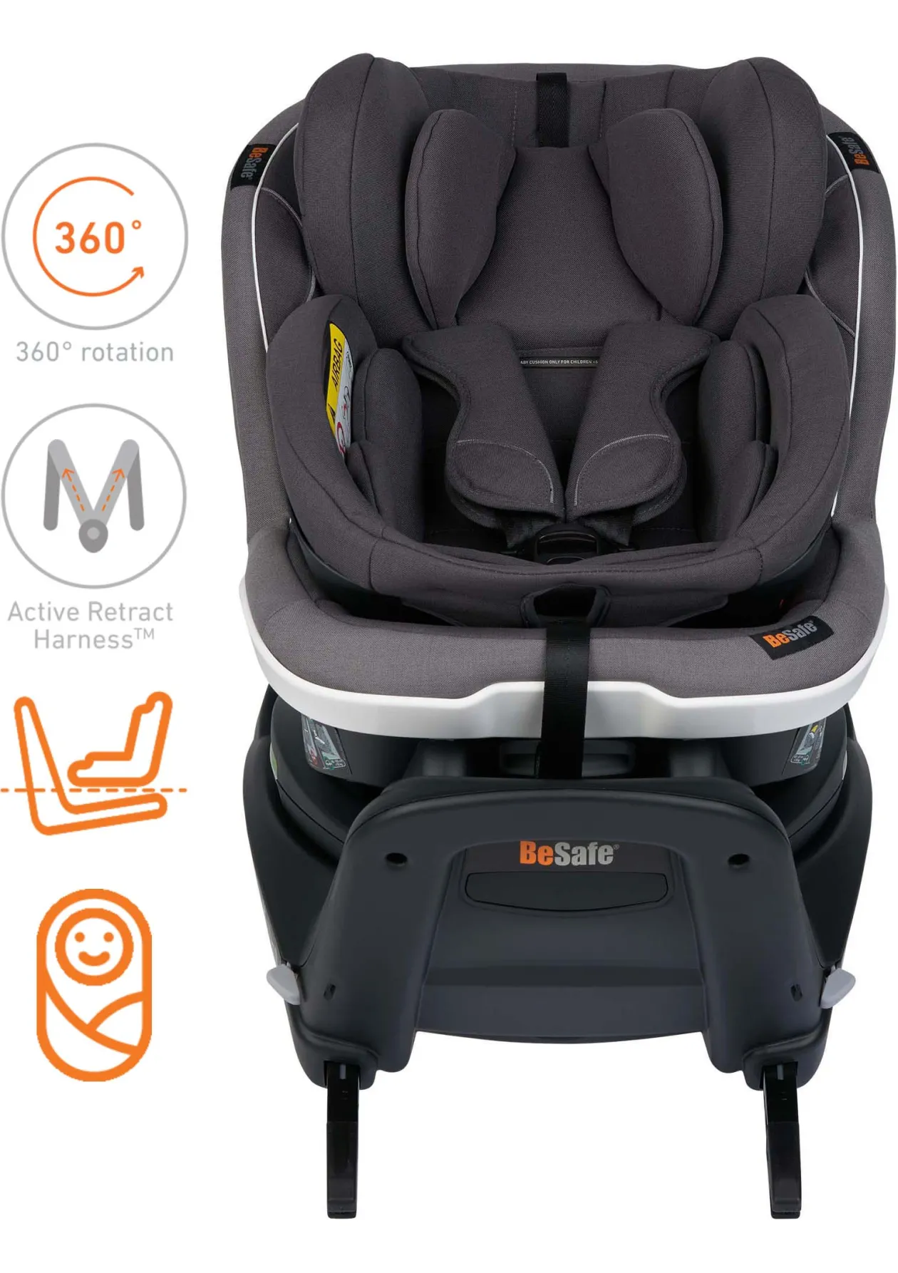 Der neue iZi Turn B i-Size begleitet dich und dein Kind von Geburt an bis ins Kleinkindalter! Dank der rückwärtsgerichteten Fahrweise bietet er ein Maximum an Sicherheit. Sollten die Beine doch einmal zu lang oder dein Kind zu neugierig geworden sein, lässt er sich einfach nach vorne drehen zum Vorwärtsfahren.