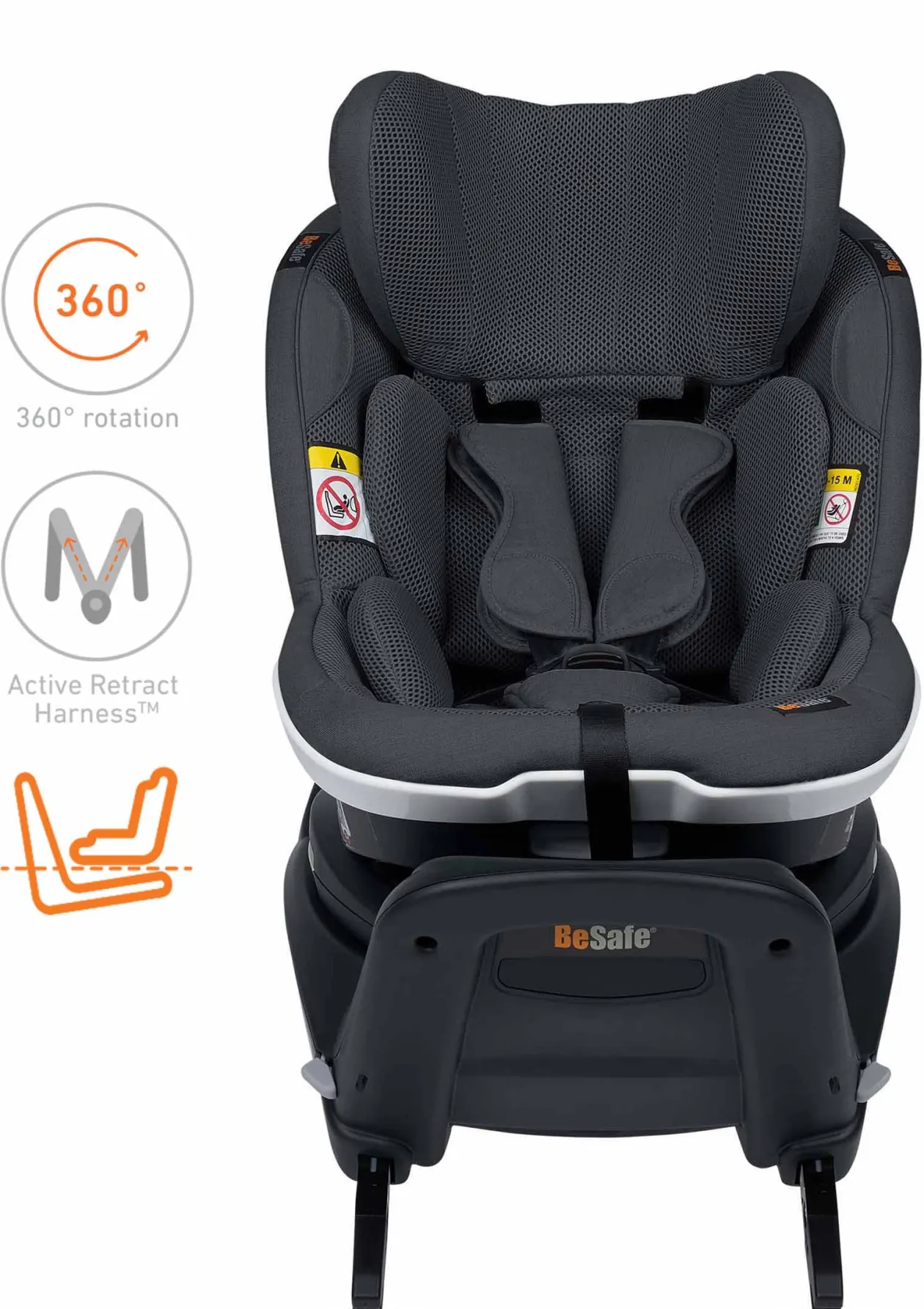 Der Kindersitz iZi Turn i-Size von BESAFE verfügt über eine komfortable Ruheposition, so dass Kinder ab dem 6. Monat darin fahren können. Zusätzlich hat der Sitz eine leicht bedienbare 360° Funktion, somit das Kind auch vorwärtsgerichtet fahren kann. Dieser Autositz hat ein optimales Maß und passt auf jede Sitzbank.