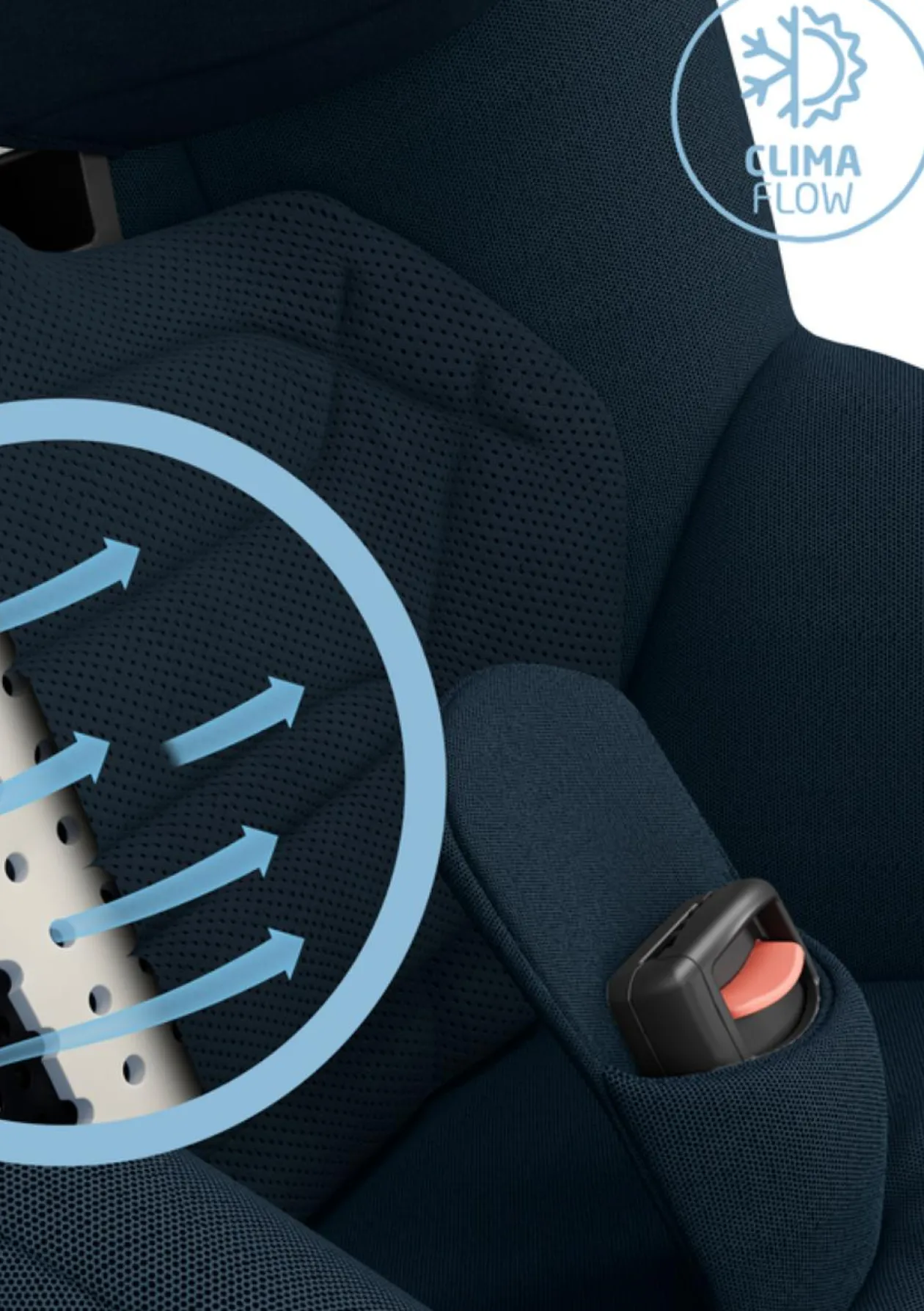 - ClimaFlow-Temperaturregulierung: Clima Flow-Paneele, atmungsaktiver Schaumstoff und klimaregulierende Mesh-Stoffe sorgen für eine angenehme Luftzirkulation und höchstes Wohlbefinden unterwegs