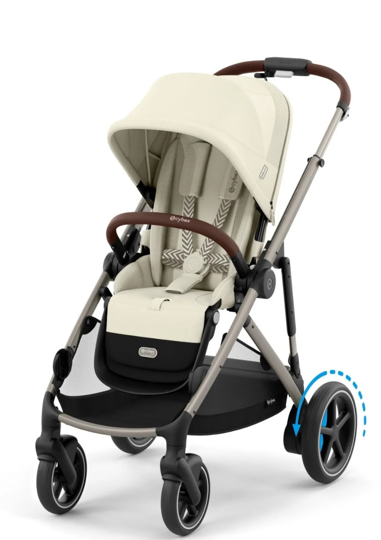 Mit E-Antrieb und Multi-Terrain-Support bringt dieser funktionale und stylische Kinderwagen von CYBEX Gold mehr Schwung in euren Alltag!