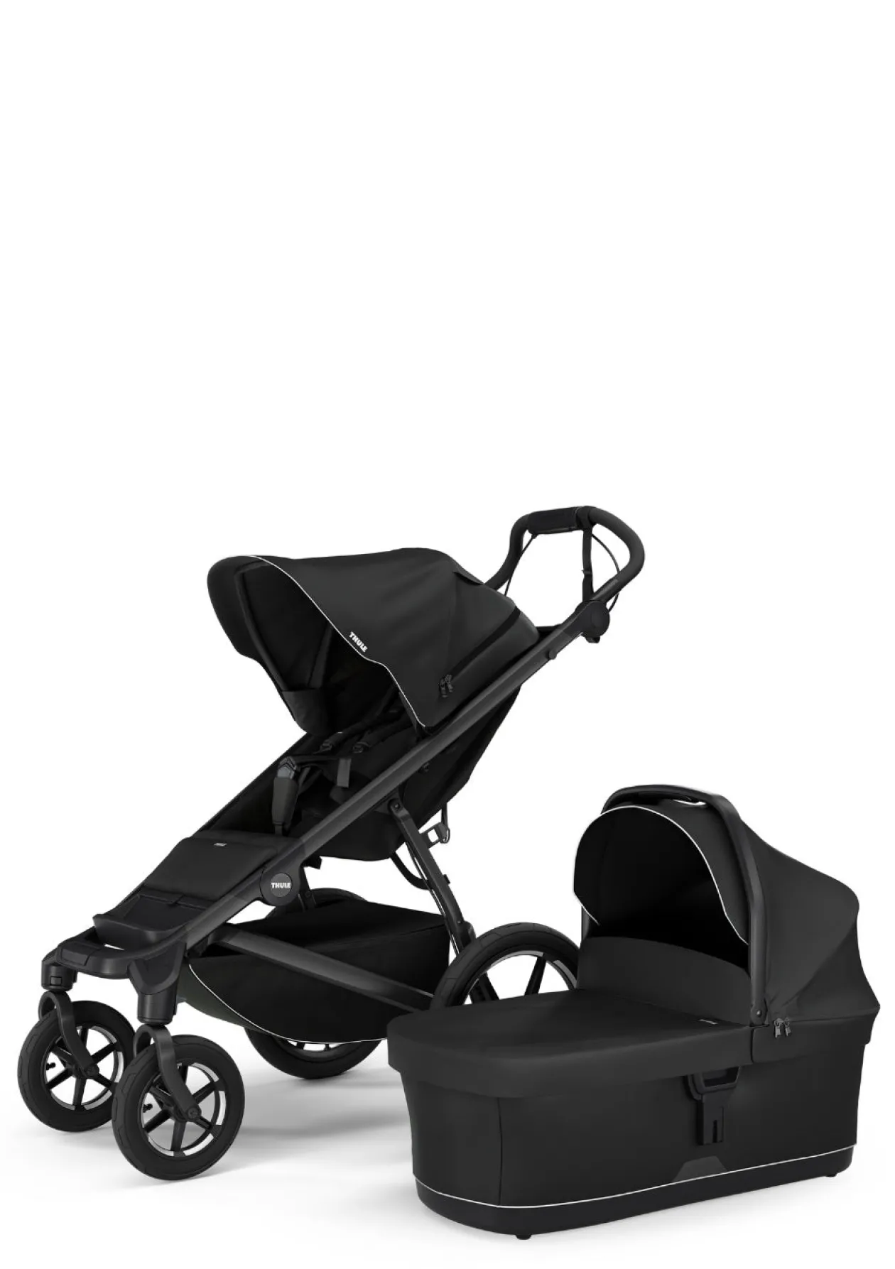 Sicherer Fahrspaß kombiniert mit maximalem Komfort: Das ist der neue THULE Urban Glide 4-Rad für aktive Familien – im Kinderwagen-Set mit Babywanne.