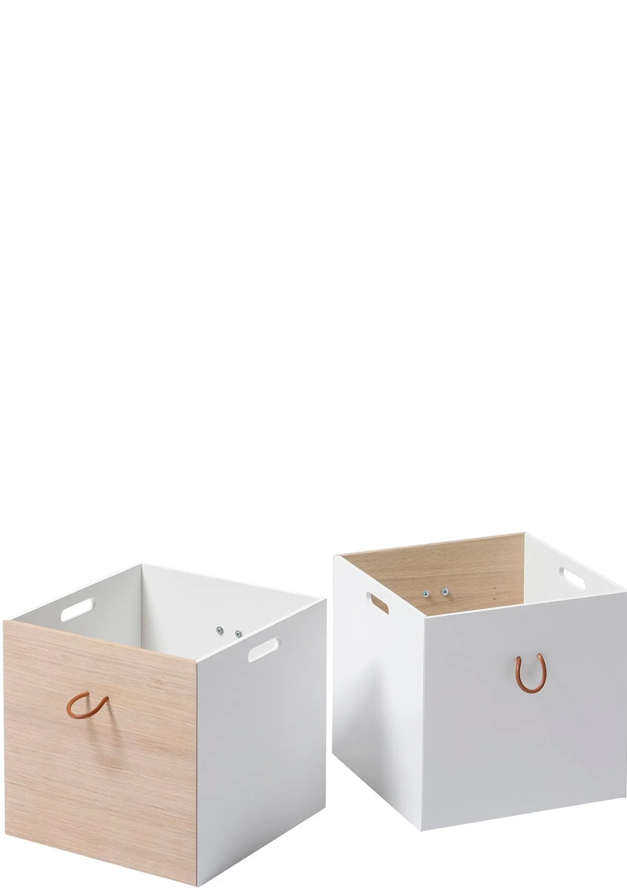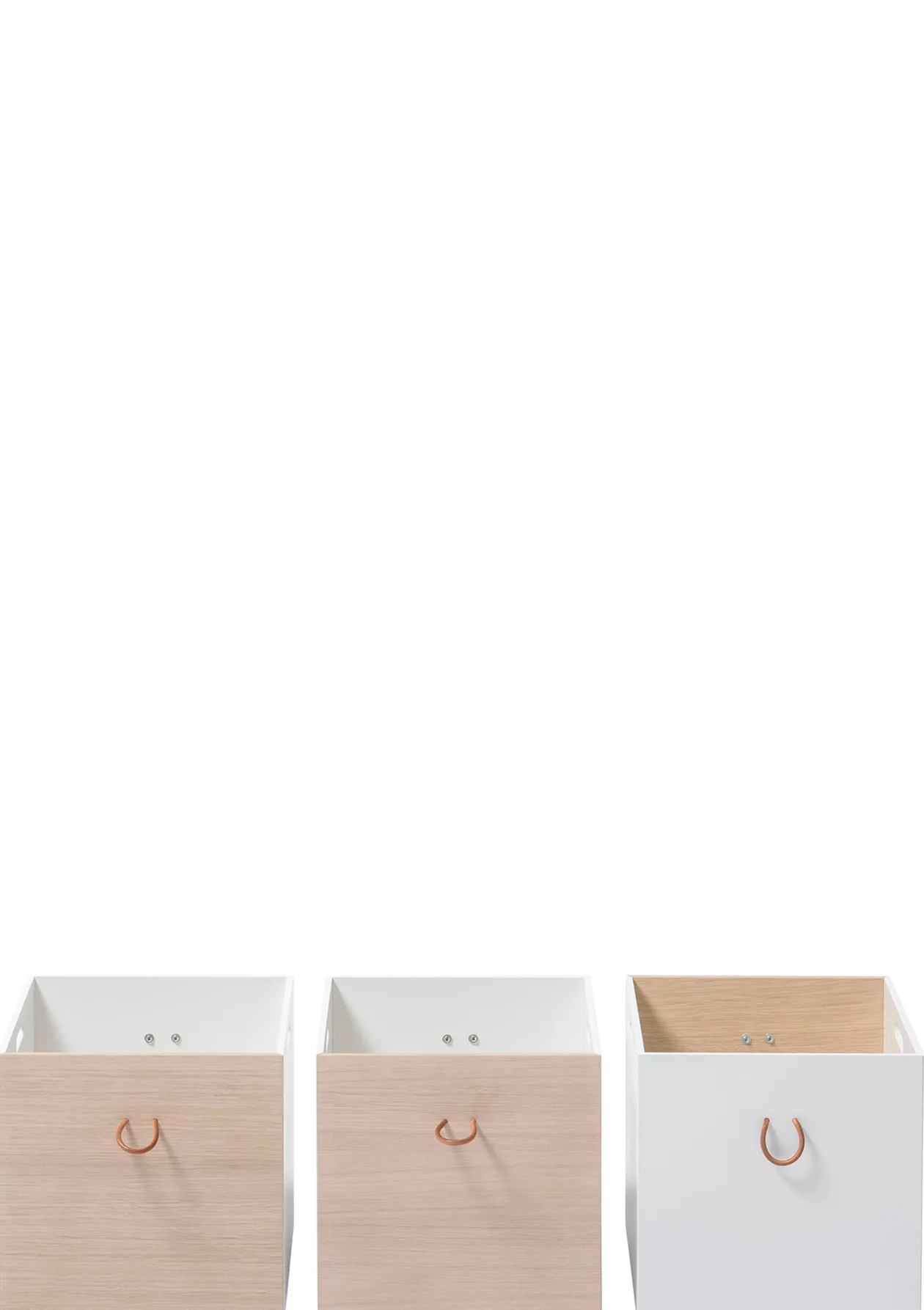 Die hochwertigen ‚Wood‘ Aufbewahrungskisten sind zuverlässige Ordnungshelfer im Kinderzimmer. Hier verschwinden Spielzeug und Kuscheltiere in Sekunden! Mit drei weißen Seiten und einer Seite aus Eichenholz passen sie zu allen OLIVER FURNITURE Regalen, machen aber auch alleine eine gute Figur.