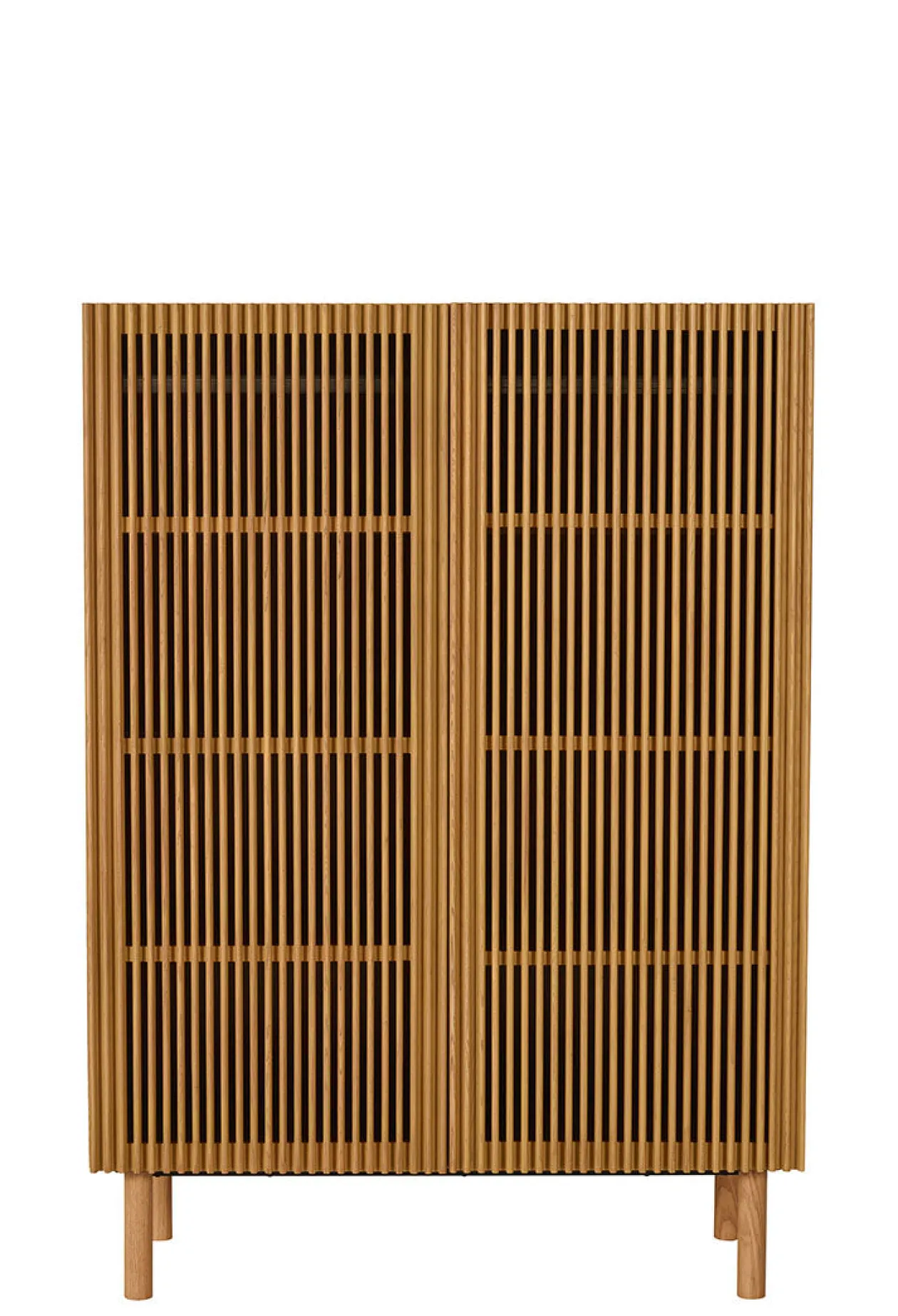 - Material: MDF-furniertes Eschenholz, Türen mit transparenten Streben aus massivem Eschenholz