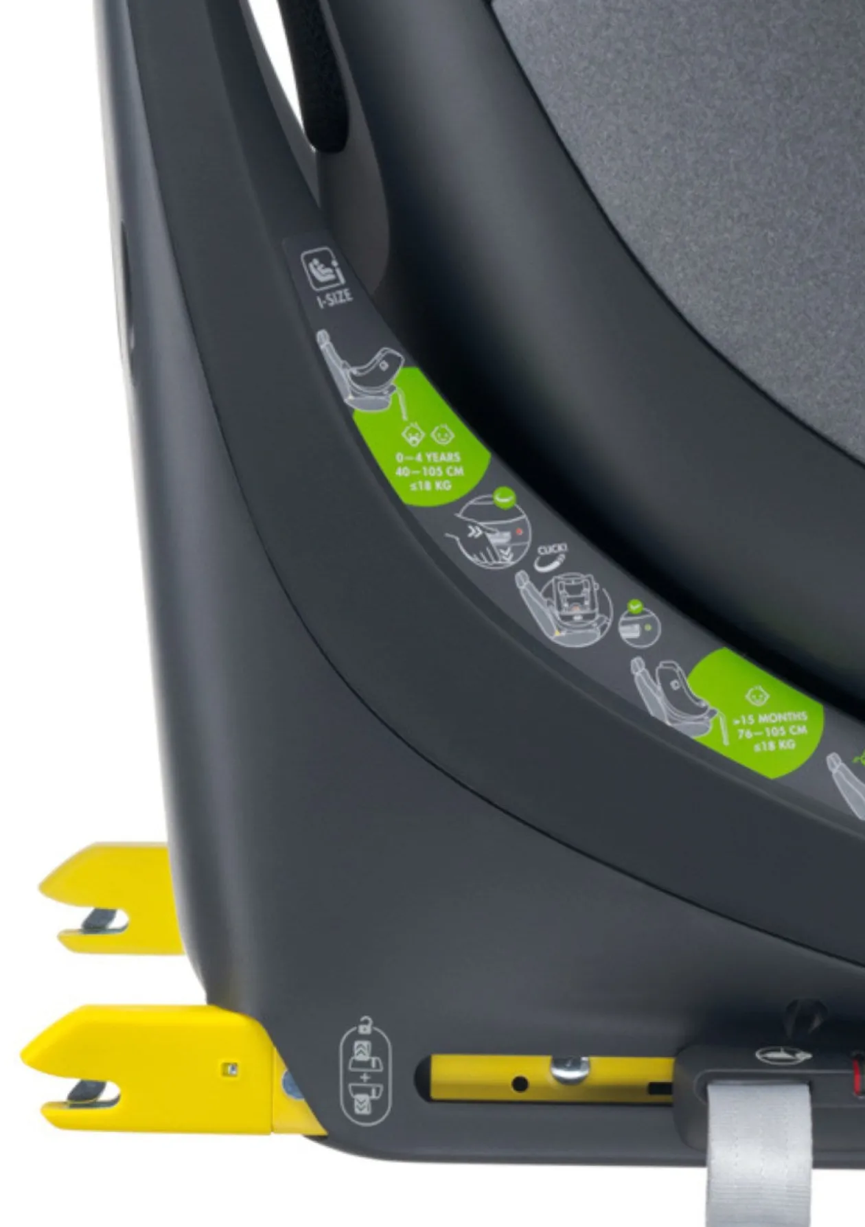 - nach der aktuellsten i-Size Norm von 40 – 105 cm oder bis zu 18 kg zugelassen