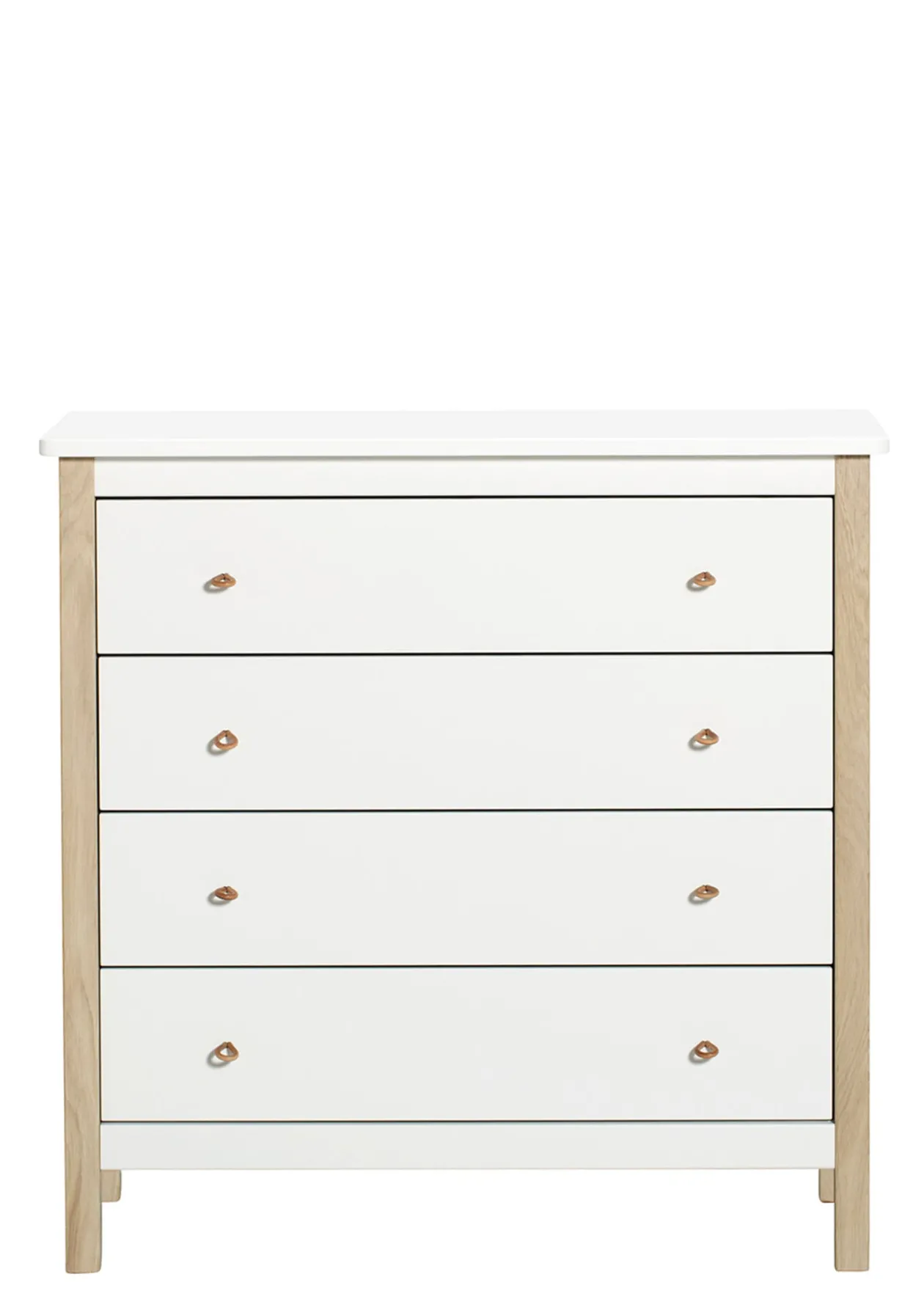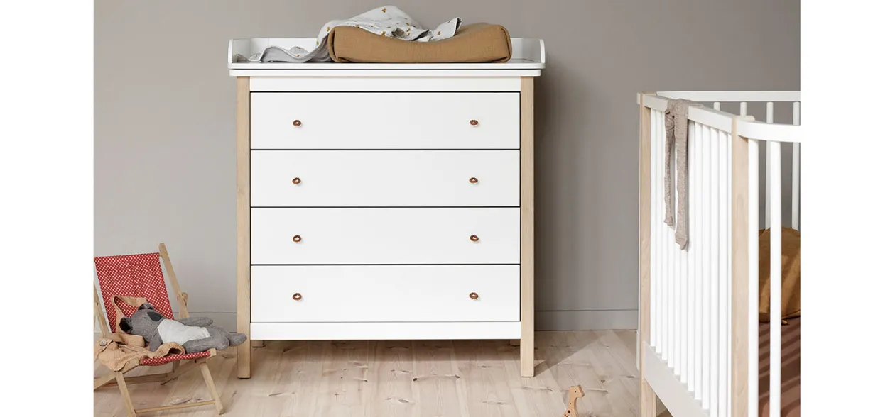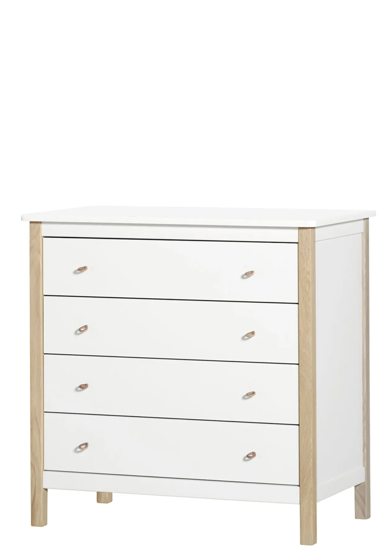 Funktionalität, Form und Qualität finden sich auch in der stilvollen Kommode von OLIVER FURNITURE wieder. Hier trifft nordische Eiche auf weißes klassisches Design, dessen Natürlichkeit durch elegante Lederriemen als Schubladenknäufe und durchgehenden Beine aus Eichenholz ergänzt wird.