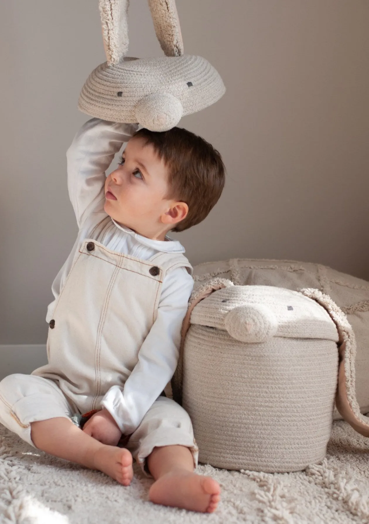 Ob Spielzeug oder kleine Schätze – dieser liebevoll gestaltete Korb im Häschen-Design bringt spielerisch Ordnung ins Kinderzimmer. Rita begeistert mit ihren extra langen, kuschelig weichen Hasenohren und lädt kleine Entdecker dazu ein, mit Spaß aufzuräumen.