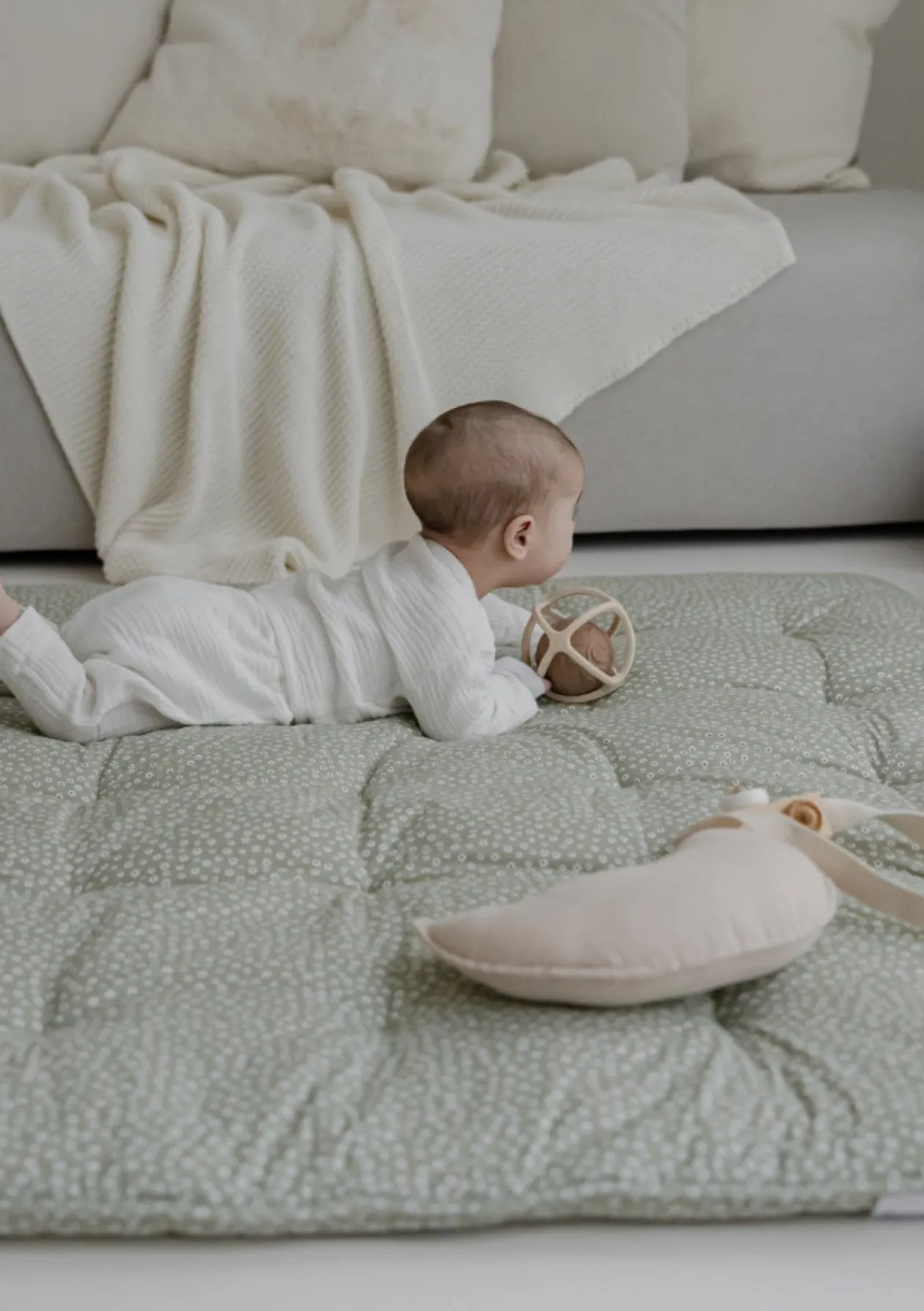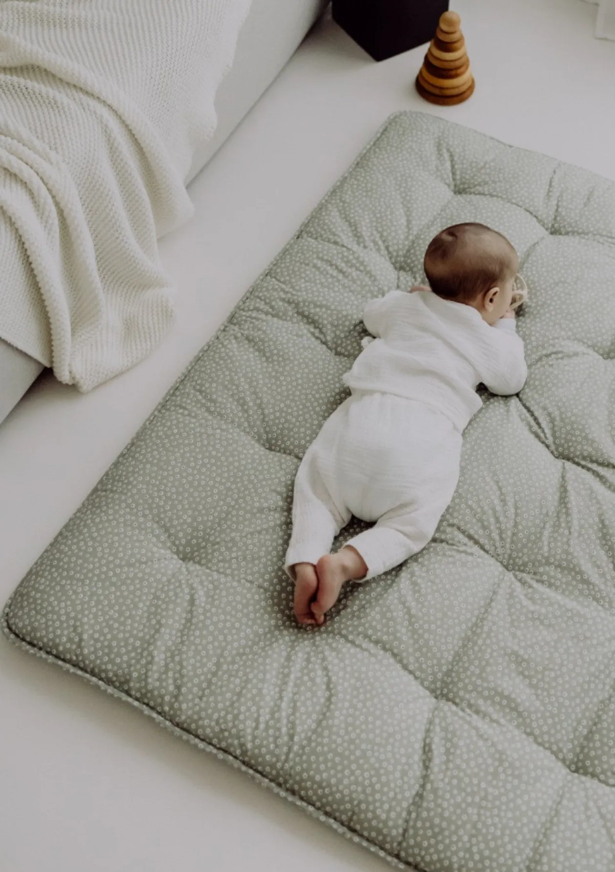 Diese wunderschöne Krabbeldecke bietet deinem Baby eine weiche und geschützte Spielfläche. Dank ihrer extra dicken Polsterung sorgt sie für hohen Komfort und hält die Bodenkälte zuverlässig fern – ideal zum Krabbeln, Spielen und Entdecken.