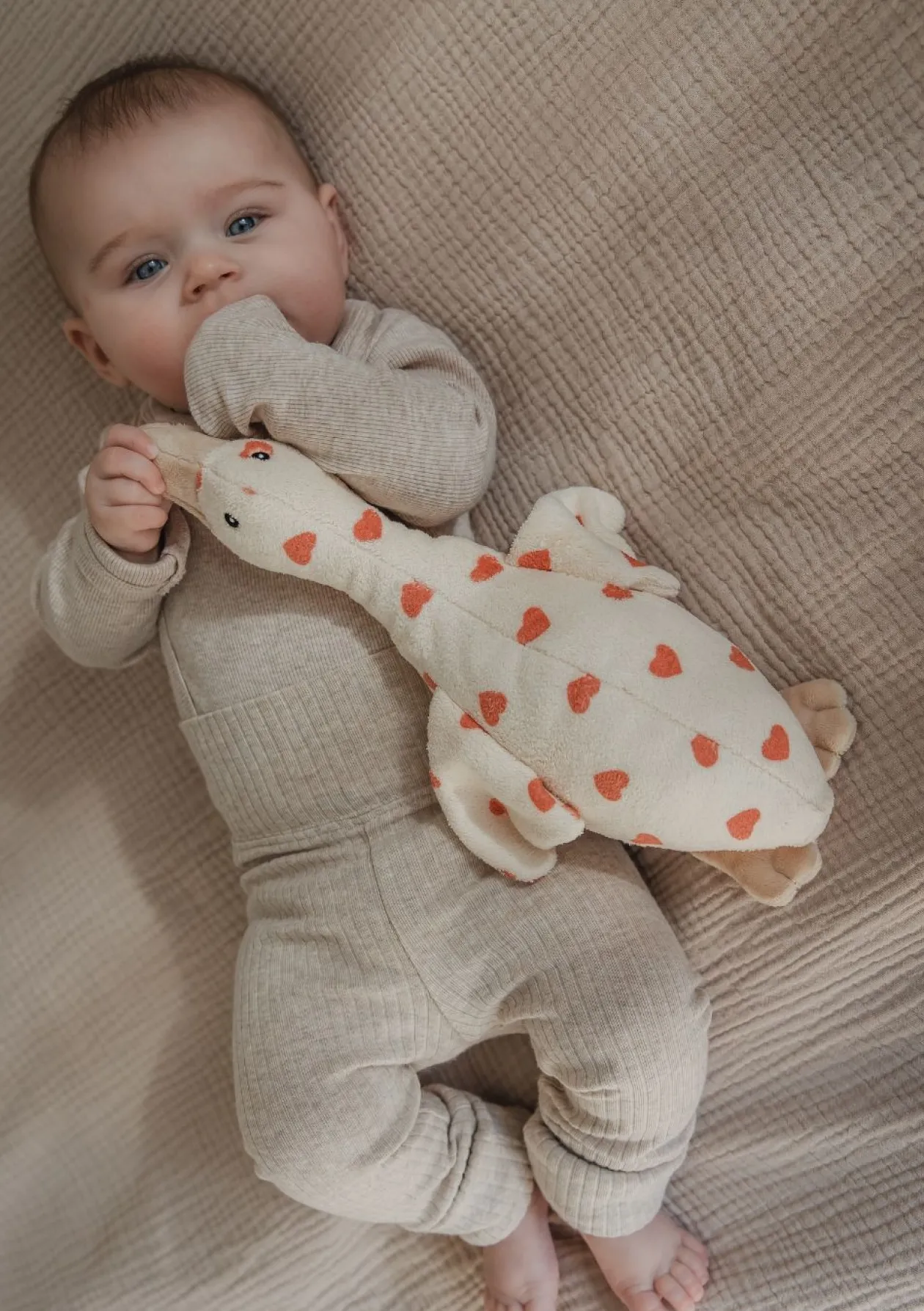 Herzallerliebst: Die talentierte Kuschelente vom niederländischen Label FLOW AMSTERDAM gibt es jetzt mit süßen Herzsprints – nur für kurze Zeit erhältlich!