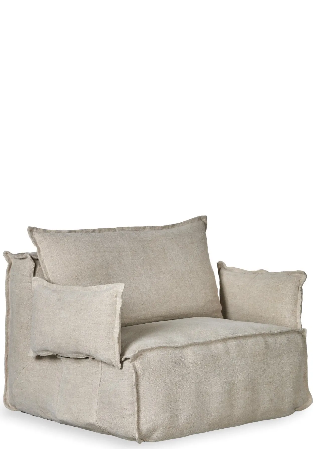 - moderner Lounge-Sessel mit Bezug aus natürlichem Leinen