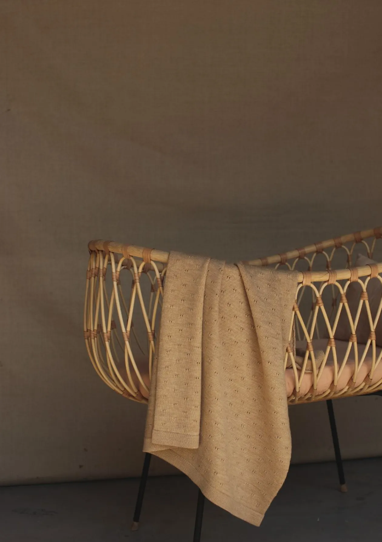 Diese kuschlige Decke von HVID hält dein Baby warm und geborgen. Die Wolle des Merinoschafs ist unglaublich weich und angenehm auf der Haut. Mit dem eingewebten Muster ist dieses Accessoire ein echter Hingucker!