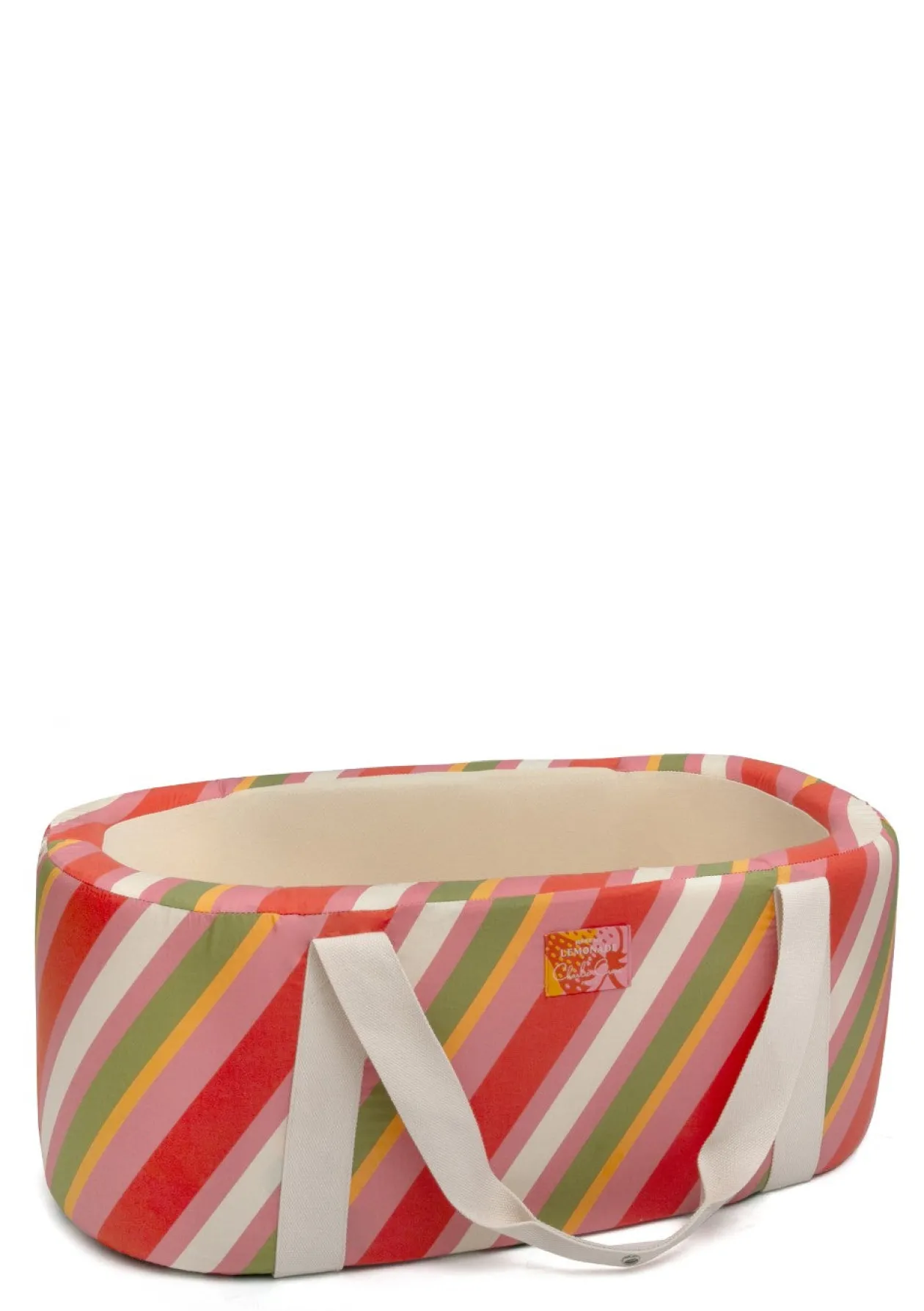 Dieser ästhetische Babykorb KUKO verbindet Komfort und farbenfrohes, grafisches Streifen-Design und ist ein echter Blickfang! Das praktische Körbchen, das sich als Tragetasche überall hin mitnehmen lässt, bietet deinem Neugeborenen höchsten Wohlfühl-Komfort. In Ergänzung mit dem separat erhältlichen Holzgestell fungiert der gemütliche Moseskorb darüber hinaus sogar als Wiege. Die sanften Schaukelbewegungen lassen deinen Liebling schnell und entspannt einschlafen. Bonne nuit, fais de beaux rêves!