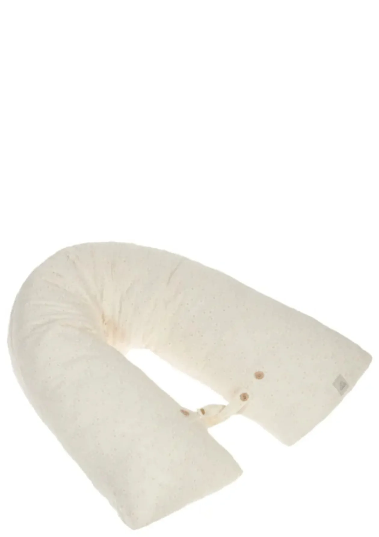 Dieses Stillkissen von NANAMI wird von wunderschönen Stickereien verziert und unterstützt dich während und nach der Schwangerschaft. Es bietet unglaublich viele verschiedene Möglichkeiten und ist dank des angenehmen Stoffs ein Accessoire zum Wohlfühlen! In der Schwangerschaft hilft es dir eine angenehme Schlafposition zu finden, damit du wieder entspannt träumen kannst. Ist euer Baby da, kannst du es als Stütze beim Stillen verwenden, um deine Arme zu entlasten. Natürlich kann man sich auch wunderbar daran anlehnen oder es zusammen knöpfen und es für euer Baby in ein Nestchen voller Geborgenheit umwandeln.