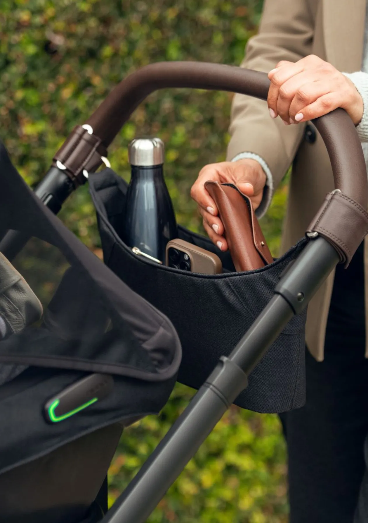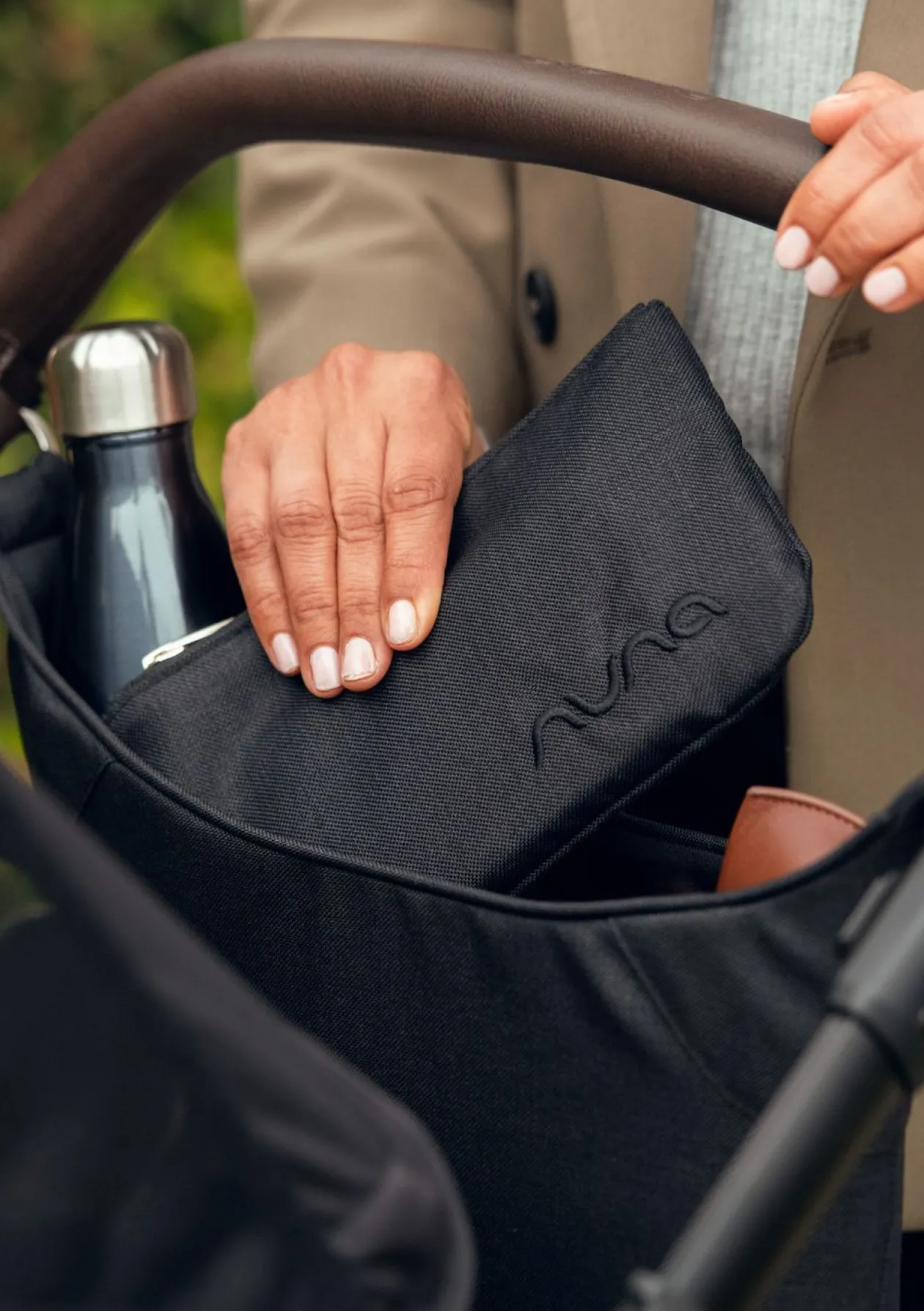 Dieser schlicht-elegante Organizer von NUNA präsentiert sich in kompaktem Design und bietet dir ausreichend Platz für alles, was du auf euren Touren stets in greifbarer Nähe haben möchtest. Praktische Innenfächer und eine herausnehmbare Clutch ermöglichen dir eine sichere, ordentliche und stilvolle Aufbewahrung und helfen dir dabei, den Überblick zu behalten. Ein wunderbares Detail ist der in der Tasche integrierte Becherhalter für gemütliche Spaziergänge mit deinem Lieblingsgetränk.