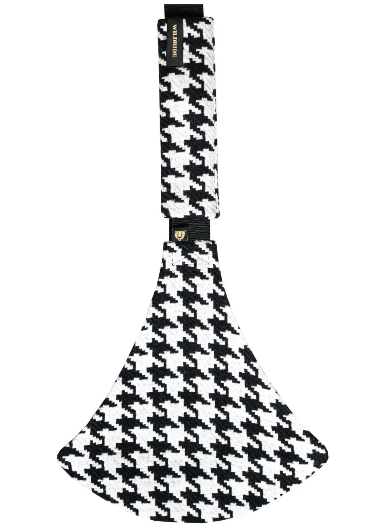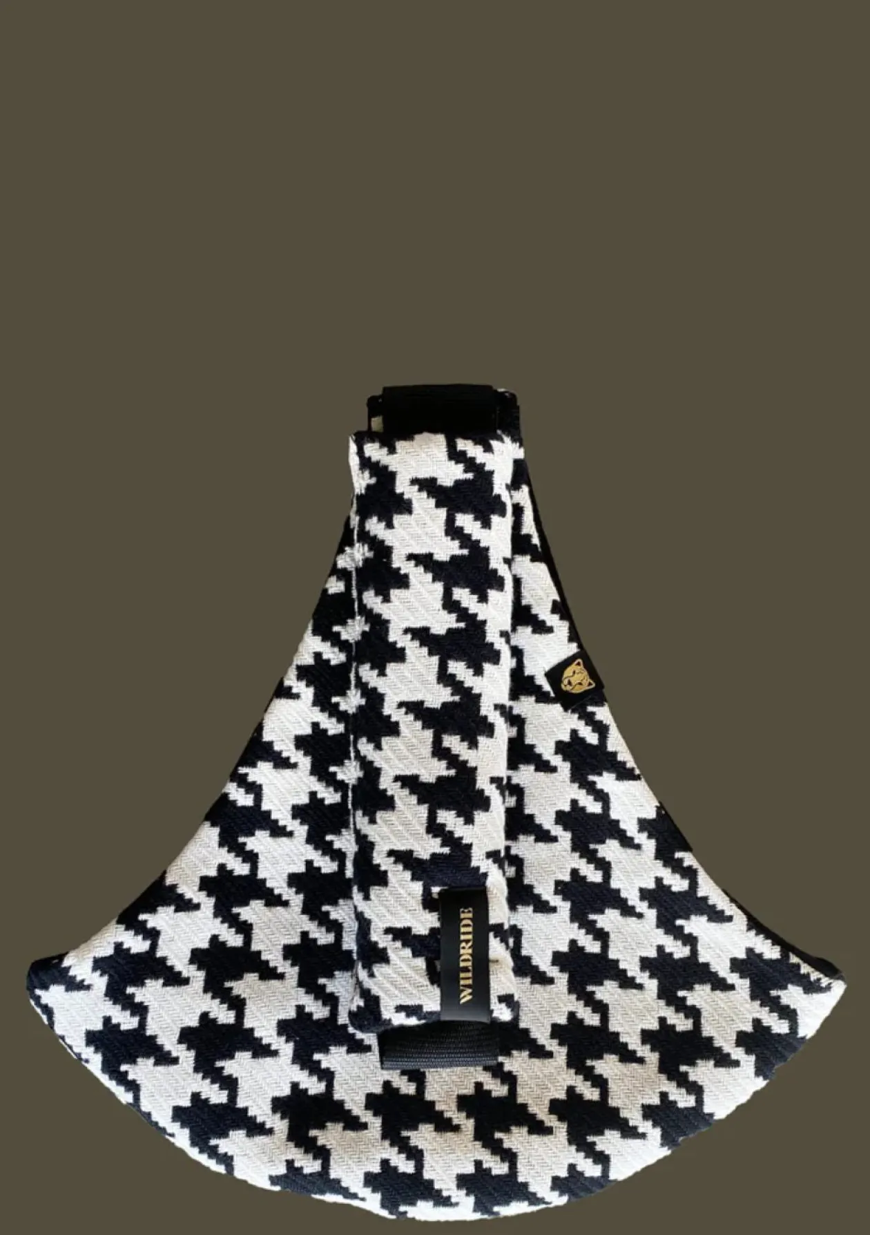 Die Premium Kindertrage von WILDRIDE vereint elegantes Design mit ergonomischem Komfort. Gefertigt aus hochwertigem Jacquard, ist das klassische Hahnentritt-Muster nicht gedruckt, sondern kunstvoll in den Stoff eingewebt – für einen besonders edlen und langlebigen Look.
