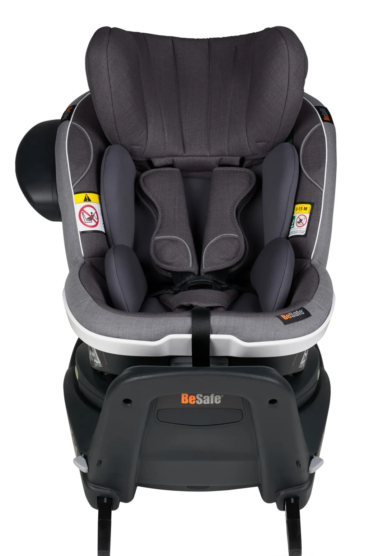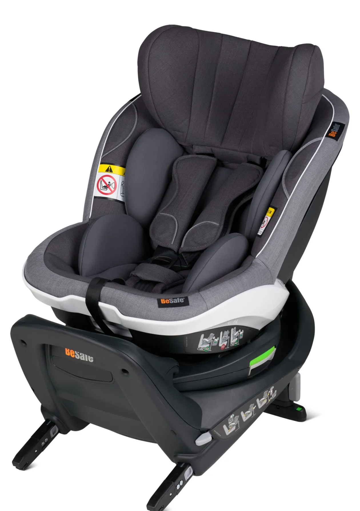Der Kindersitz iZi Twist i-Size von BESAFE verfügt über eine komfortable Ruheposition, so dass Kinder ab dem 6. Monat darin fahren können. Zusätzlich ermöglicht die Drehfunktion zur Fahrzeugtür ein entspanntes Ein- und Aussteigen. Der Reboarder mit integrierte ISOfix- Station hat den Crashtest nach schwedischen Standards bestanden und hat beim ADAC-Test 2020 mit der Note 2,3 sehr gut abgeschnitten. Dieser Autositz hat ein optimales Maß und passt auf jede Sitzbank.