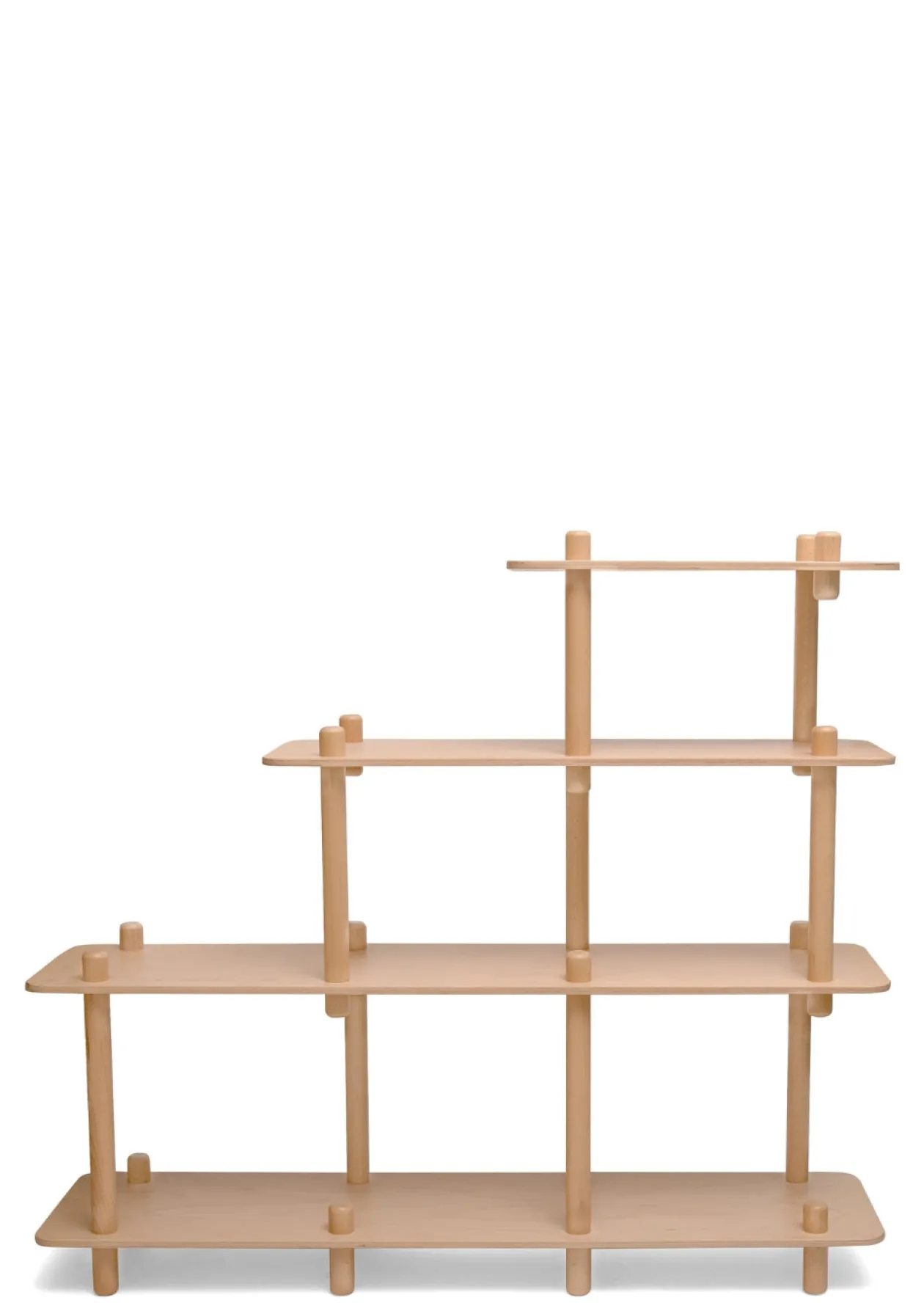 Dieses wunderschöne Regal ist aus massivem Buchenholz und Buchenholz-Multiplex gefertigt und daher besonders stabil und langlebig. Es versprüht pure Natürlichkeit im Kinderzimmer und vereint Ästhetik und Zweckmäßigkeit. Auf vier unterschiedlich großen Ablageflächen bietet es ausreichend Platz für Bücher, Spielzeug und Dekoratives. Durch die offene Gestaltung wirkt das leichte Standregal auch in kleinen Räumen nicht zu wuchtig, sondern ergänzt sie als stilvoller Hingucker mit Stauraum-Faktor.