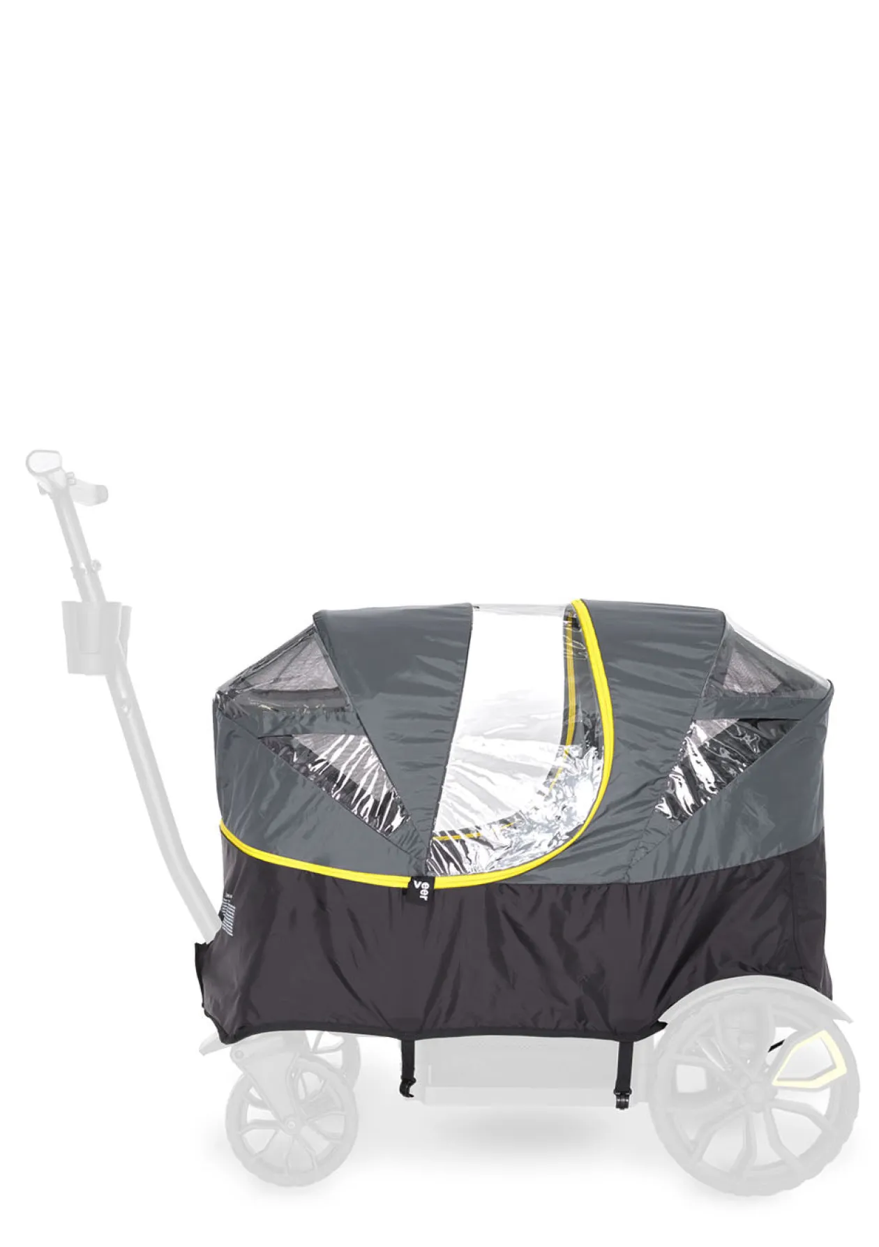 Dank der verschiedenen Kombinationsmöglichkeiten, könnt ihr das Regenverdeck sowohl mit einem oder mit zwei Sonnendächern nutzen.