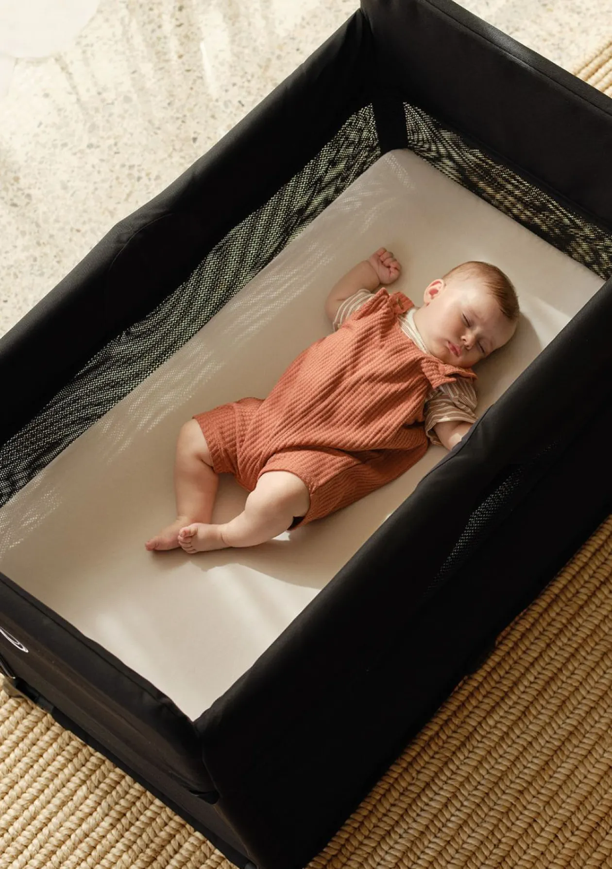 Endlich ein Reisebett, das einen nicht verzweifeln lässt und in Sekundenschnelle einsatzbereit ist, wenn man es braucht. Schlafenszeit leicht gemacht! Das neue Reisebett von BUGABOO klappt sich in nur einer Sekunde auf. Einfach Clip lösen, aufklappen, fertig. Dank der integrierten Matratze lässt es sich in nur drei Sekunden wieder zusammenlegen. Die Matratze lässt sich auf zwei Höhen einsetzen, so dass ihr euer Neugeborenes bequem und rückenschonend hereinlegen und herausnehmen könnt. Wow – wir sind begeistert!